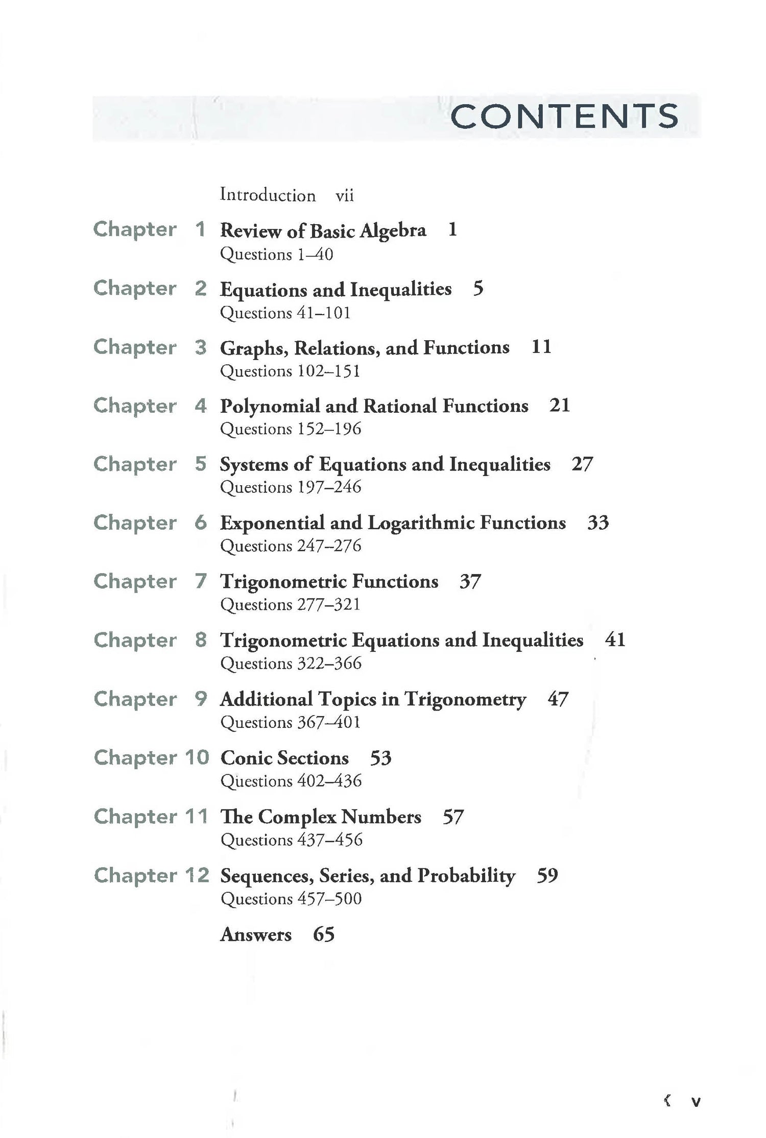 500 essential college algebra and trigonometry questionsComplete answer explanationsComprehensive coverage of first-year college algebraand trigonometry topics