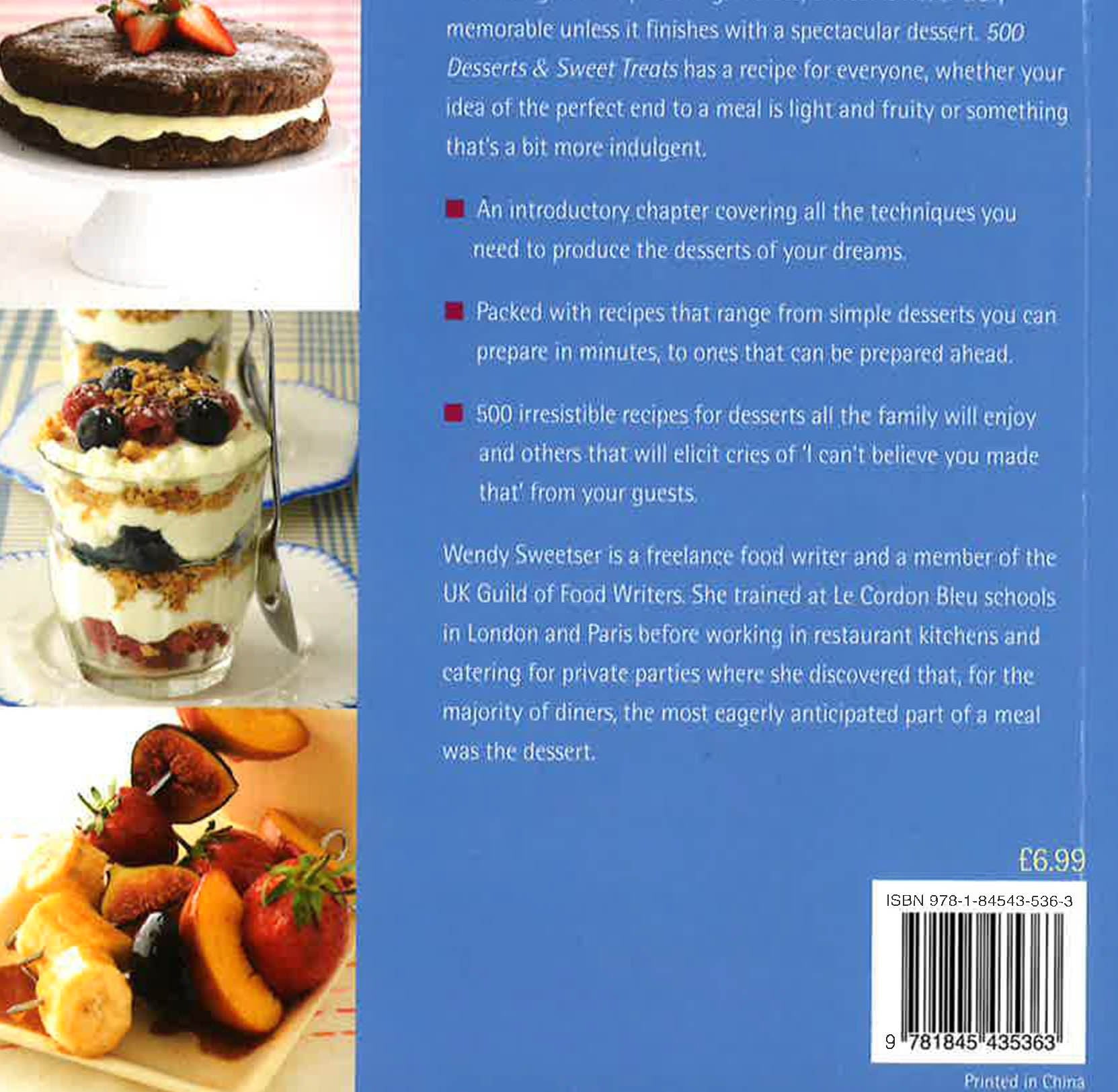 However good the preceding courses, a meal is never truly memorable unless it finishes with a spectacular dessert. 500 Desserts and Sweet Treats has a recipe for everyone, whether your idea of the perfect end to a meal is light and fruity or something that's a bit more indulgent. An introductory chapter covering all the techniques you need to produce the desserts of your dreams Packed with recipes that range from simple desserts you can prepare in minutes, to ones that can be prepared ahead. 500 irresistible recipes for desserts all the family will enjoy and others that will elicit cries of 'I can't believe you made that' from your guests