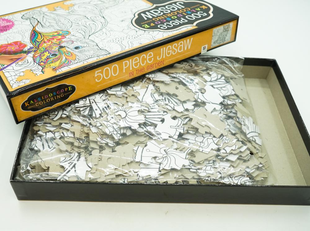 This kaleidoscope coloring 500 piece jigsaw is the perfect way to demonstrate your puzzle powers and artistic skills.
