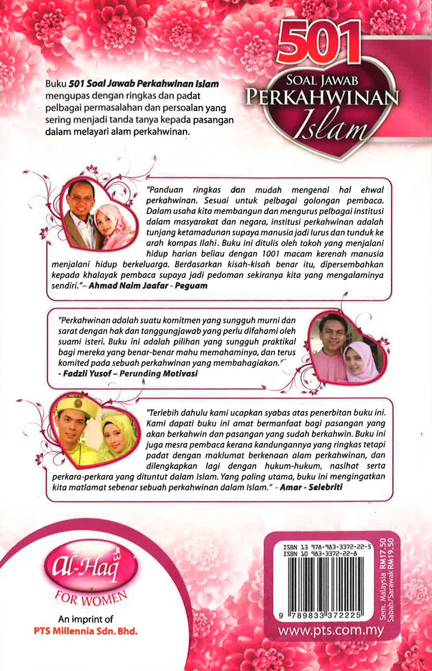 Buku 501 Soal Jawab Perkahwinan Islam mengupas dengan ringkas dan padat pelbagai permasalahan dan persoalan yang sering menjadi tanda tanya kepada pasangan dalam melayari alam perkahwinan.