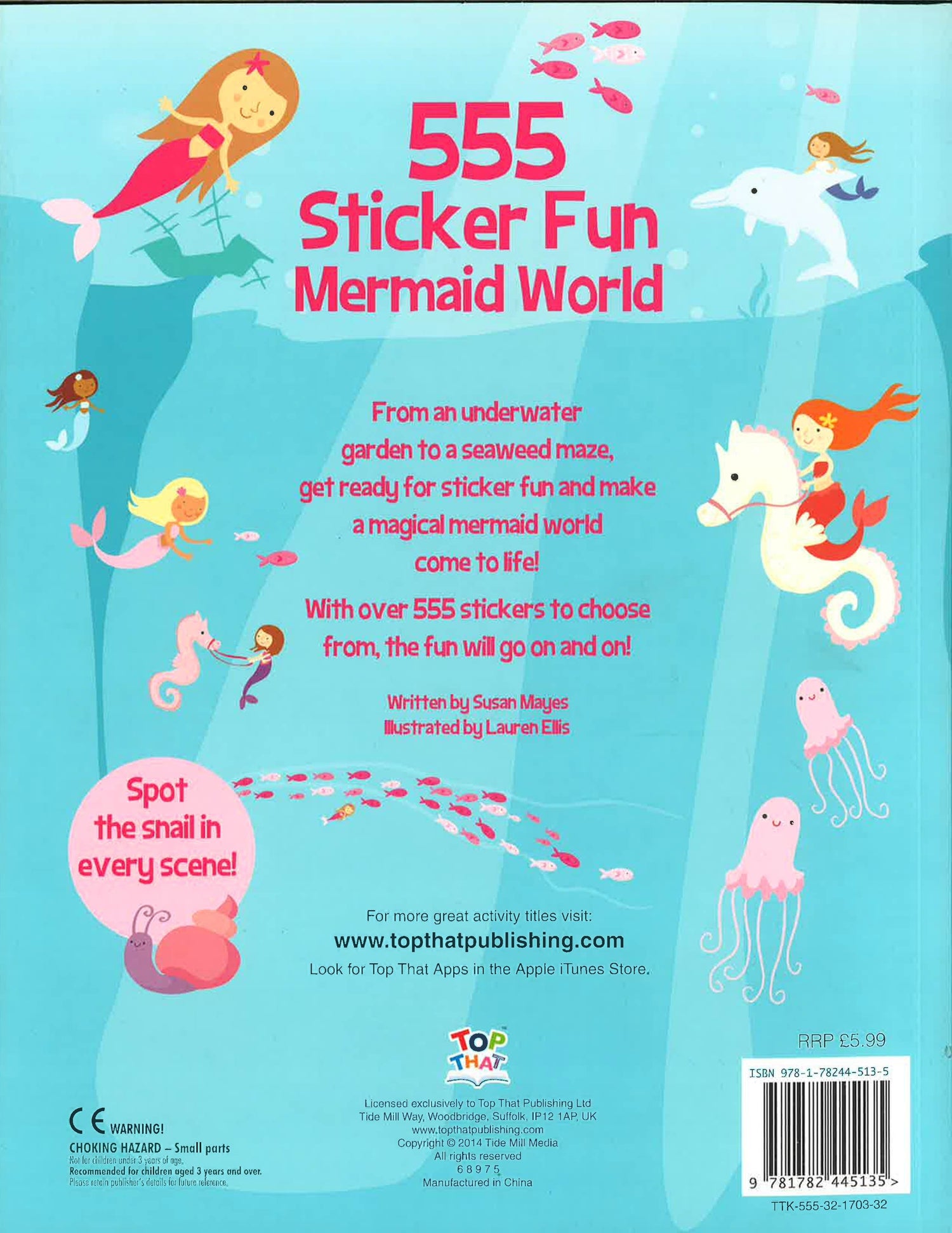 from an underwater garden to s seaweed maze, get ready for sticker fun and make a magical mermaid world come to life! With over 555 stickers to choose from, the fun will go on and on!