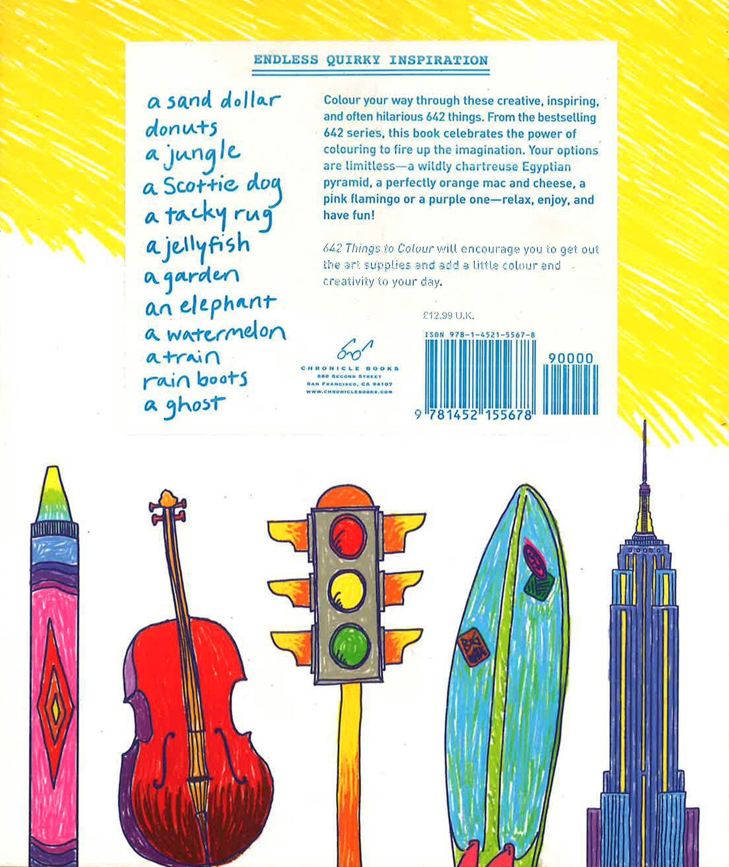 An exciting reinvention of the bestselling 642 Things to Draw, this unique colouring book is jam packed with fun illustrations just waiting to be coloured. Easy, fun, inspiring, and quirky this is the perfect new volume for 642 fans and colouring book fans alike.