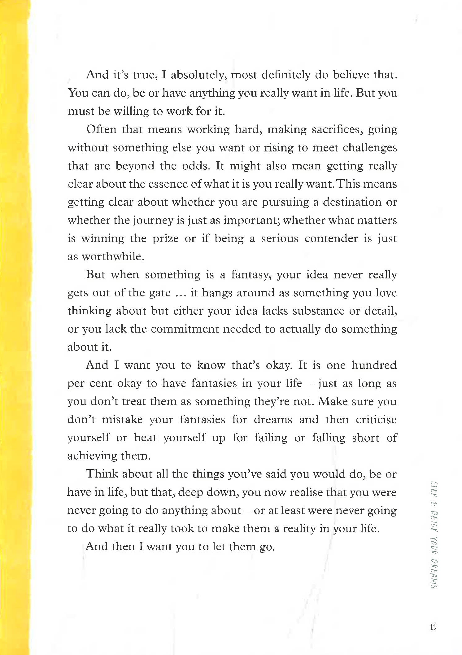 For most people, achieving our goals, creating new habits, and making other positive changes in our lives can be very difficult to do. We either can't get started or end up in an endless cycle of making progress and then undermining or sabotaging that progress. But it's not because we're lazy or lack commitment. Often, it's because we start our quest for change in the wrong place... focusing on our actions. What we really need to do when we want to change or improve our lives is to focus on our MINDSET. When we get our mindsets right, everything else will fall into place. With seven easy steps Domonique takes you through: how to detox your dreams, discover your 'no', choose your mood, ignore the voices, confront the enemy, say goodbye to your 'but', and see clearly into your future.