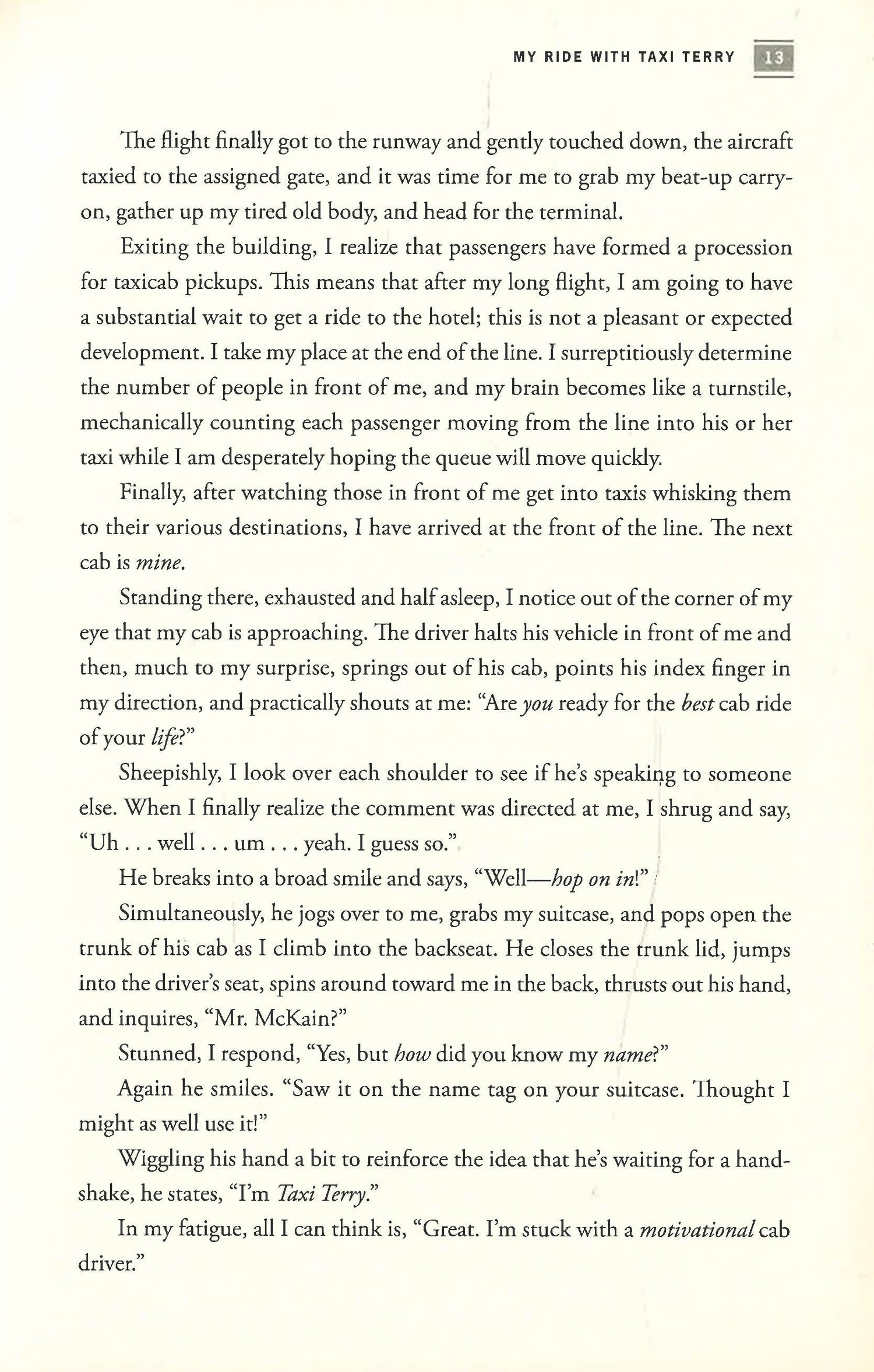 Inspired by the Ideas and Insight of Taxi Terry...The Best Guide to Customer Service You Will Ever ReadNo matter who you are, what you do, where you work, or how much money you make, you can learn a lot from a cab driver--especially when it is Taxi Terry, a successful self-starting entrepreneur who combines passion with effort and skill to create distinction in his job and in his life. Bestselling author and Hall of Fame speaker Scott McKain was so impressed by Terry's joyful approach to customer service, he incorporated the driver's inspiring personal philosophy and uplifting advice into hisbusiness speeches at corporate events--with stunning success. These are the 7 Tenets of Taxi Terry: Set high expectations--then, exceed them!Delivering what helps the customer . . . helps you.Customers are people--so, personalize the experience.Think logically--then act creatively and consistently.Make the customer the star of your show!Help your customers to come back for more.Creating joy for your customer will make your work--and life--more joyful! If you want to be more than just a job title, Taxi Terry will inspire you to be better at what you do and become the best in your field. You'll find step-by-step strategies for each of the seven tenets, with actionable solutions that can be applied to an endless range ofworkplace problems. Also, with a special focus on "internal customers"--the people you rely on every day within your own company--the book addresses one of the most destructive issues in business today: employee disengagement. Using the same techniques that win over customers, you can actively engage coworkers, clients, and colleagues more effectively. In other words, everybody wins. 7 Tenets of Taxi Terry is your road map to an extraordinary journey--full of wonderful encounters and mutually rewarding experiences--that will take you anywhere you want to go. PRAISE FOR 7 TENETS OF TAXI TERRY:"Scott McKain is a great storyteller and Taxi Terry delivers: it provides you what you need to know and do to provide your customers the kind of experience that will delight them and keep them coming back for more." -- Mark Sanborn, author of The Fred Factor and CEO of Sanborn and Associates "McKain clearly shows again why he is the master at teaching companies how they can out-market, out-sell, and out-service their competition." -- Dr. Tony Alessandra, author of The Platinum Rule and The NEW Art of Managing People "McKain shows you how to consistently deliver a level of service that makes you and your business distinctive in the hearts and minds of your customers. You will want every person in your company to read this bookand apply its lessons." -- Randy G. Pennington, author of the award-winning bestseller Make Change Work "This book is another masterpiece from the brilliant business mind of Scott McKain." -- Patricia Fripp, CSP, CPAE, former president of the National Speakers Association and a leading executive speech coach "I have loved the story of Taxi Terry every time I've heard Scott tell it. It's entertaining, funny, and always a crowd pleaser. In this great book, Scottgives you a chance to go deeper into the story and learn the lessons you need to deliver a great customer service experience." -- Larry Winget, television personality and six-time bestselling author of Grow a Pair and Shut Up, Stop Whining, and Get a Life!