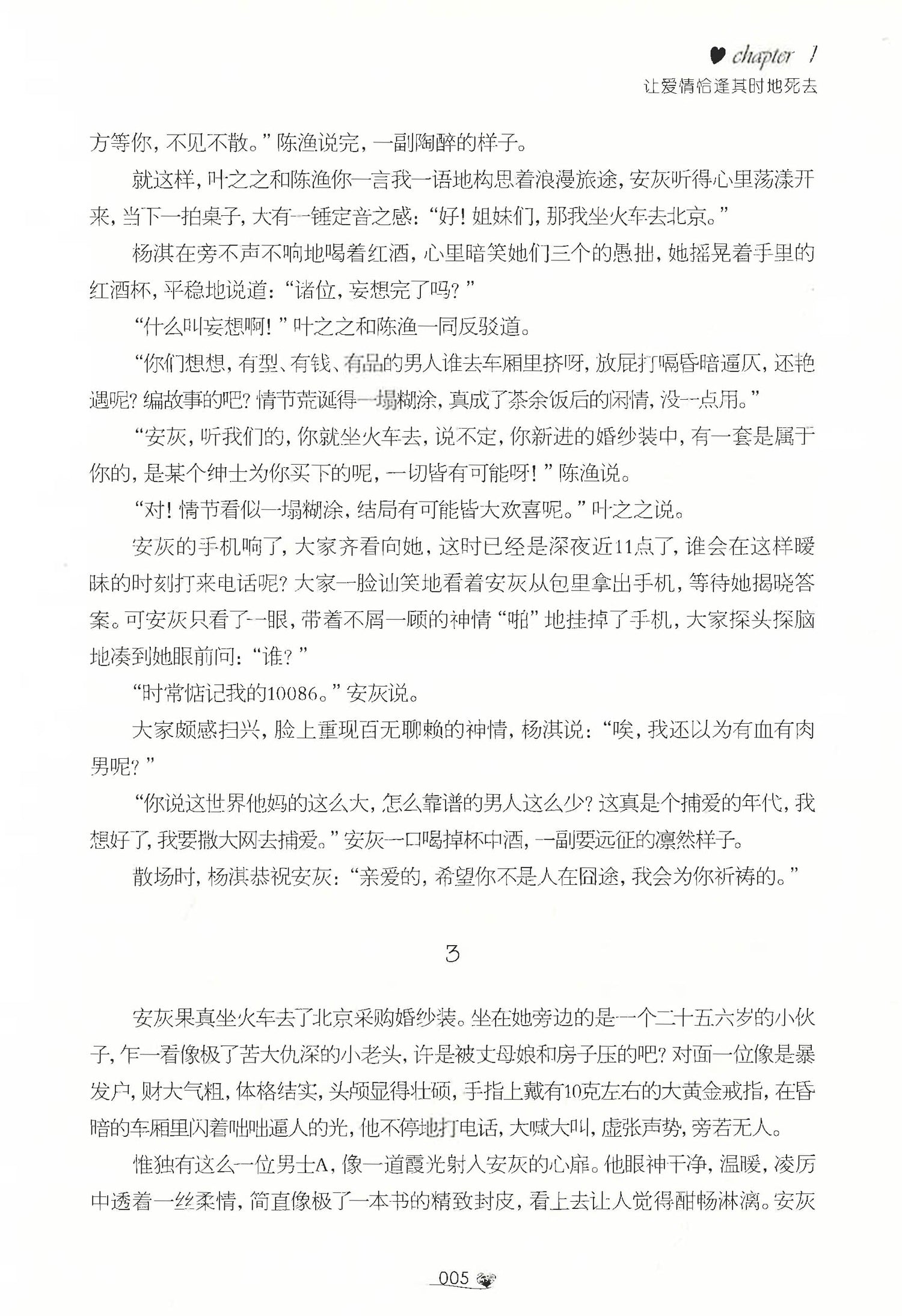 安灰:婚纱影楼老板,相貌平平,坚强独立,事业心强,心直口快,热情幽默。她一手高举女权主义大旗,一手拨云撩雾寻觅爱情,一段时间患有亲密恐惧症。