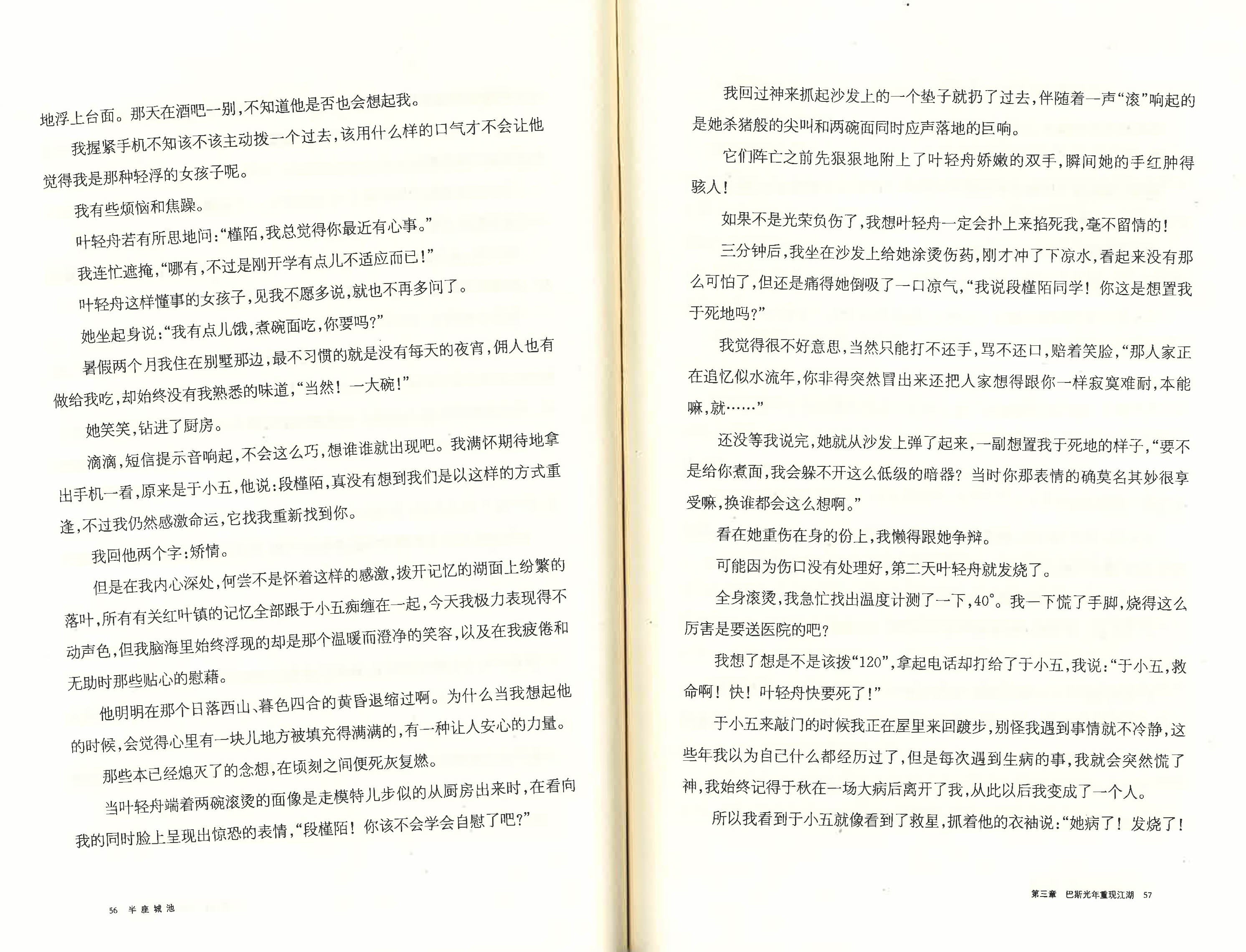段槿陌出生的地方叫红叶镇,在那里她度过了自己最美好的童年。后来于秋嫁人,生病,段槿陌被朋友出卖,于秋过世,被继父骚扰,段槿陌决定按于秋去世前留下的信去找自己的亲身父亲。却发现自己的亲生爸爸是一个很有钱的人,他有自己的家庭。然后开始了另一段生活,认识了好朋友叶轻舟。大学开学那天,段槿陌也遇到自己喜欢的男孩桐岛,叶轻舟在开学前的暑假进了段槿陌爸爸的公司打工……生活悄无声息地跟希望背道而驰。段槿陌对桐岛毫无保留的关心,于小五对段槿陌沉默隐忍的疼爱,叶轻舟和桐岛间一触即发的情感,段皓予对叶轻舟无微不至的照顾……他们的命运将向何处发展,怎样让一些从战场上厮杀回来的人相信战争其实是件美好的事,在各自坚守自己的守护时,他们将发生怎样的摩擦。也许爱情幻灭后,他们的生命还能留下一些别的东西。