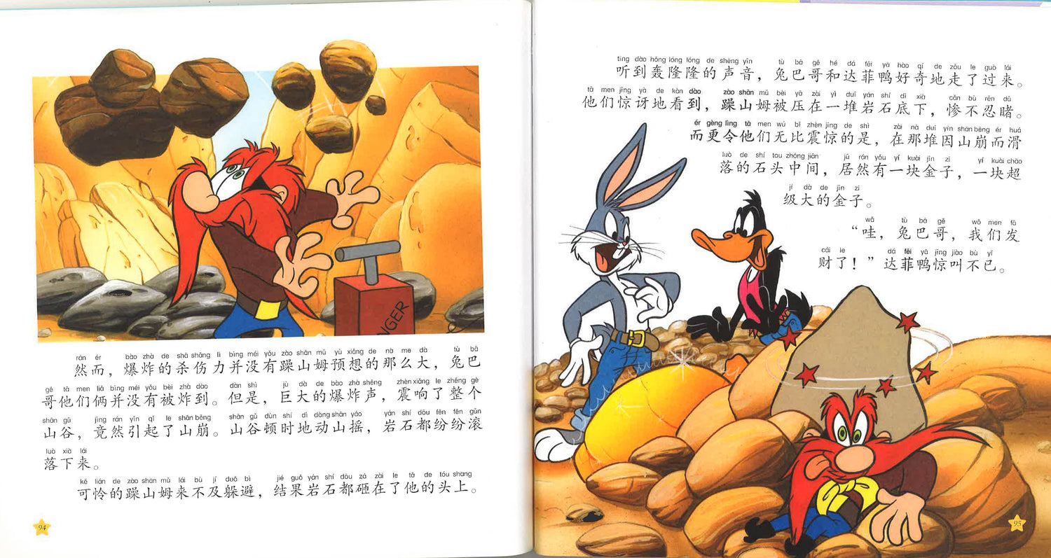 书中的兔八哥、达菲鸭、山姆、崔弟、傻大猫等都是全世界孩子熟悉的动画形象。他们幽默风趣,勇敢顽强,智慧超群在故事中,他们一起经历从未体验过的滑雪惊魂,陪伴老奶奶参演肥皂剧,还协助警官破了不少匪夷所思的大案。
