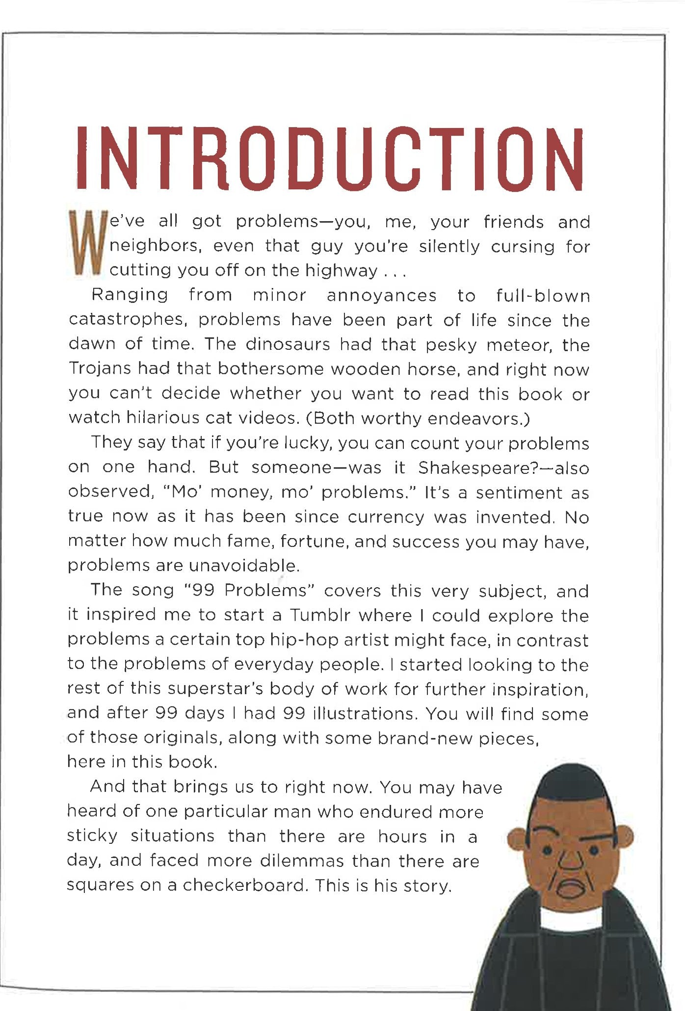 Poor Superstar. All the money and fame in the world won't prevent him from having a bad hair day. Or stepping in gum. Or not being able to fit into skinny jeans, or watching helplessly as a scoop of ice cream falls from its cone. Or so an unnamed Superstar's life is ingeniously imagined in this very funny book. Inspired by but not based on Jay Z's monster hit "99 Problems," illustrator Ali Graham riffs on what might be the real problems afflicting a world-famous music mogul who also happens to be married to the foremost diva of our time. Begun as a Tumblr, which went viral almost instantly, 99 Problems is a highly conceptual gift book showcasing 99 full-color illustrations of a cartoon character who looks just like a certain legendary rapper, and the often ordinary and sometimes fantastical things that happen to him. And that's where the book finds its hilarious, compulsive hook - in an age that worships celebrity and assumes, somewhat enviously, that fame and fortune can protect one from life's travails, what if that just weren't true?