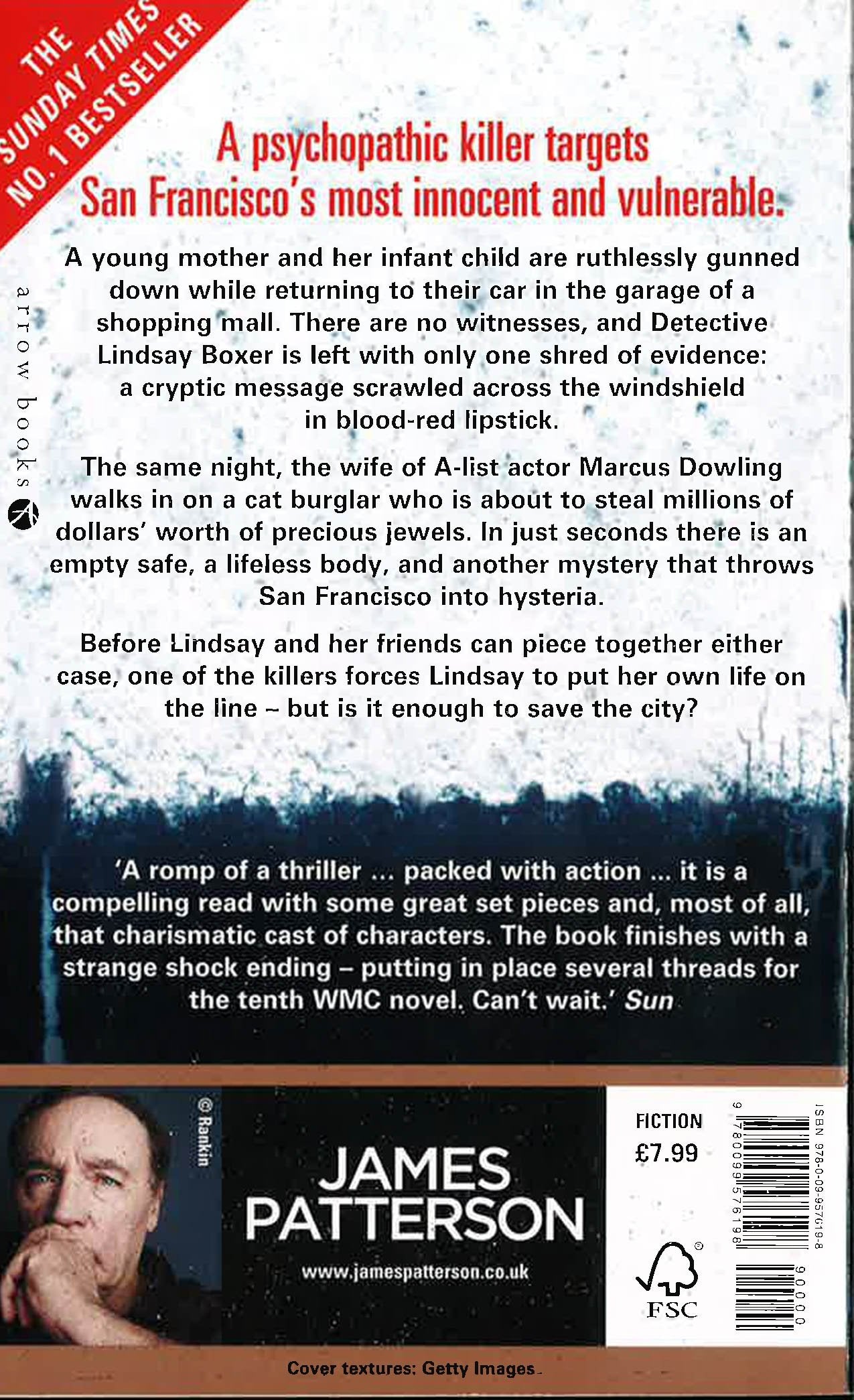 A young mother and her infant child are ruthlessly gunned down while returning to their car in the garage of a shopping mall. There are no witnesses, and Detective Lindsay Boxer is left with only one shred of evidence: a cryptic message scrawled across the windshield in blood-red lipstick. The same night, the wife of A-list actor Marcus Dowling walks in on a cat burglar who is about to steal millions of dollars' worth of precious jewels. In just seconds there is an empty safe, a lifeless body, and another mystery that throws San francisco into hysteria. Before Lindsay and her friends can piece together either case, one of the killers forces Lindsay to put her own life on the line - but is it enough to save the city?