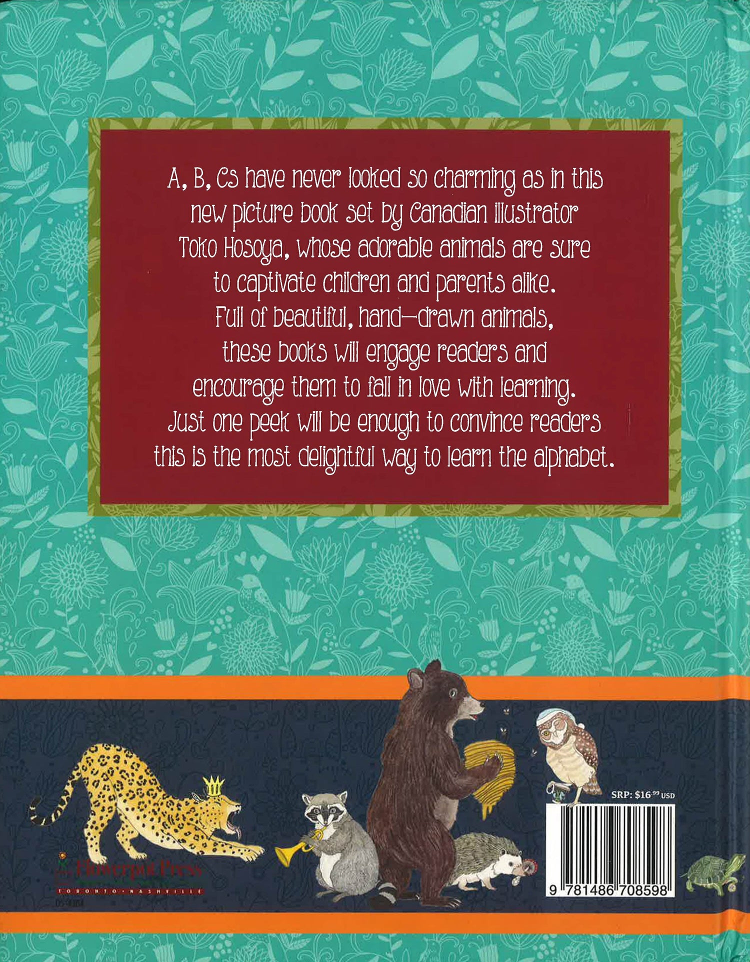 Join your favorite furry friends from the animal kingdom as they guide young readers through the alphabet in this charming picture book. The beautifully hand-drawn illustrations makes learning the A, B, Cs more fun than ever before and is sure to engage early learners! The book also comes with a poster displaying all of the animals and the letters they represent! *This book may have a remainder mark (Age Range 2-8)