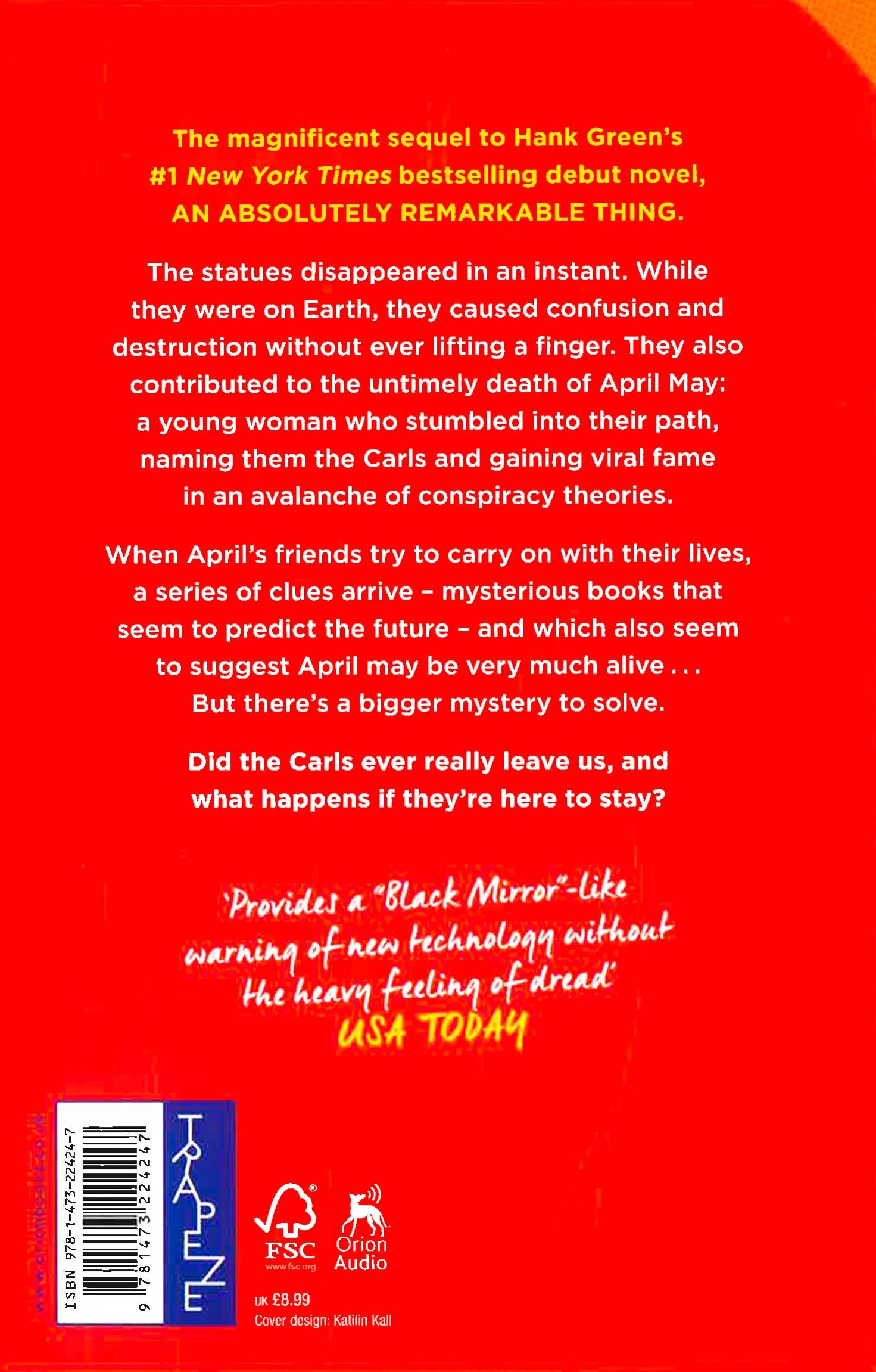 The statues disappeared in an instant. While they were on Earth, they caused confusion and destruction without ever lifting a finger. They also contributed to the untimely death of April May: a young woman who stumbled into their path, naming them the Carls and gaining viral fame in an avalanche of conspiracy theories.