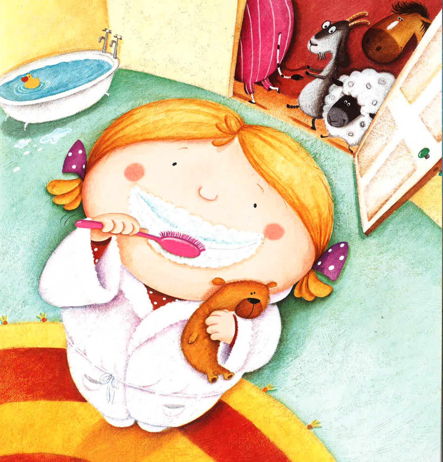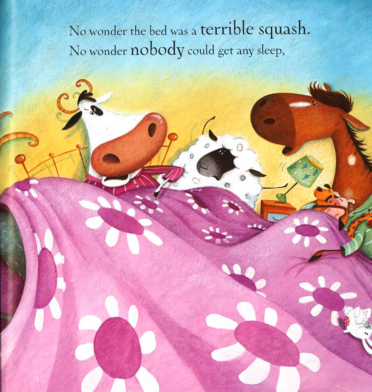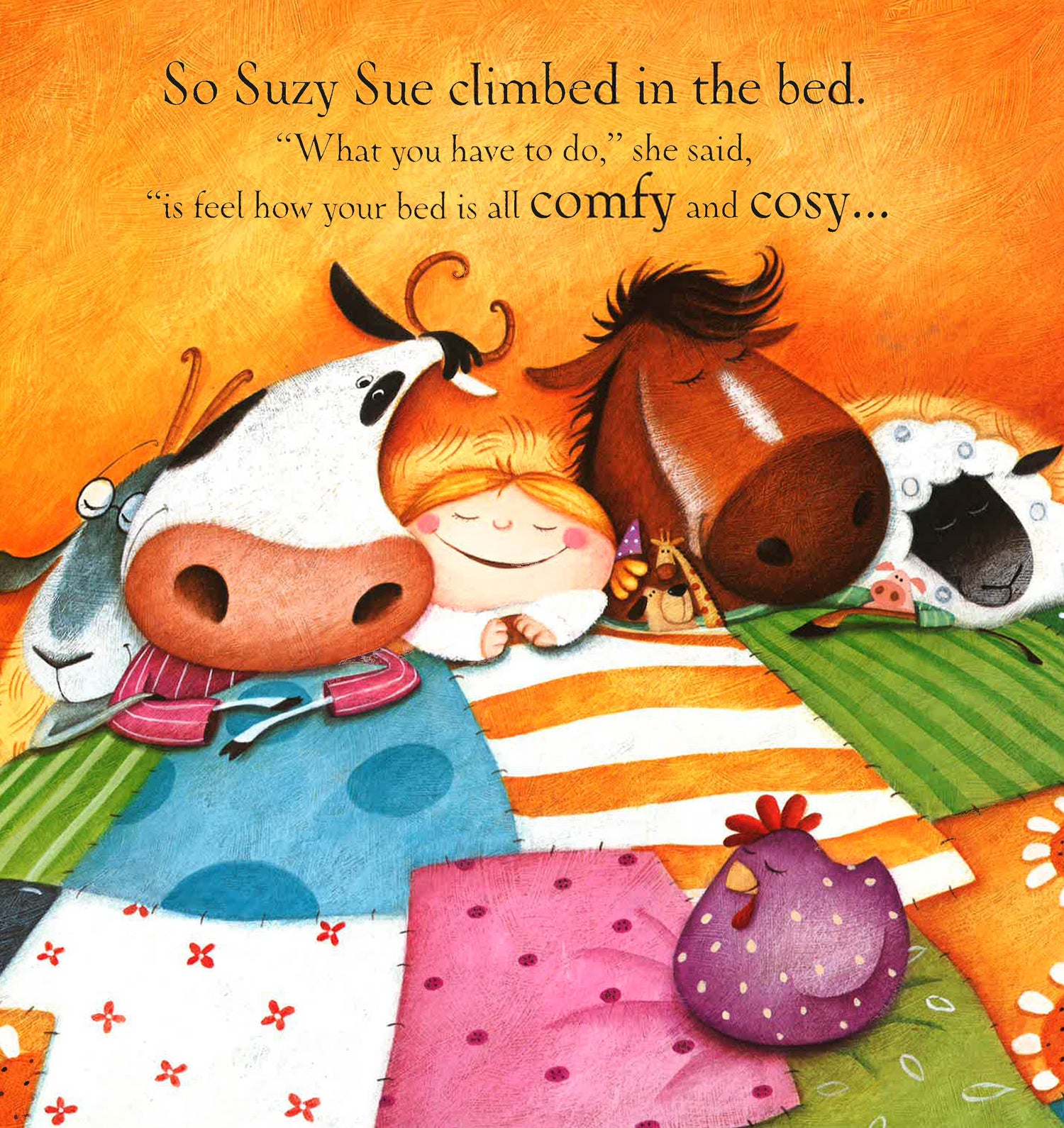 This is the story of Suzy Sue, ready for bed just like you! But then she finds a cow, a horse, a sheep and a goat all fighting for space in her bed! Will she ever get to sleep?
