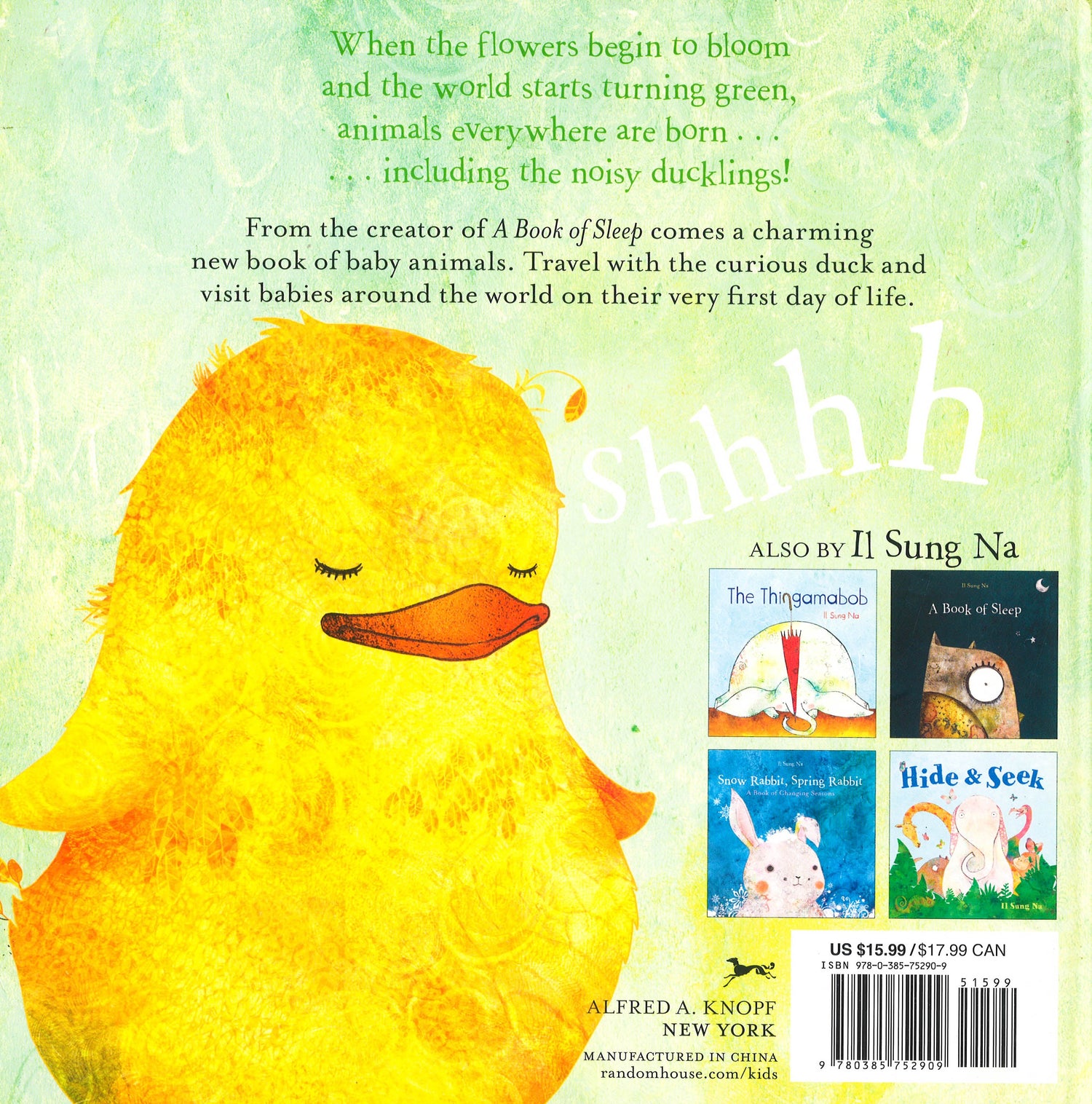 When the flowers begin to bloom and the world starts turning green, animals everywhere are born . . . including the noisy ducklings! From the creator of A Book of Sleep and Snow Rabbit, Spring Rabbit comes a beautiful book of baby animals. Travel with the curious duck and visit babies around the world on their very first day of life.