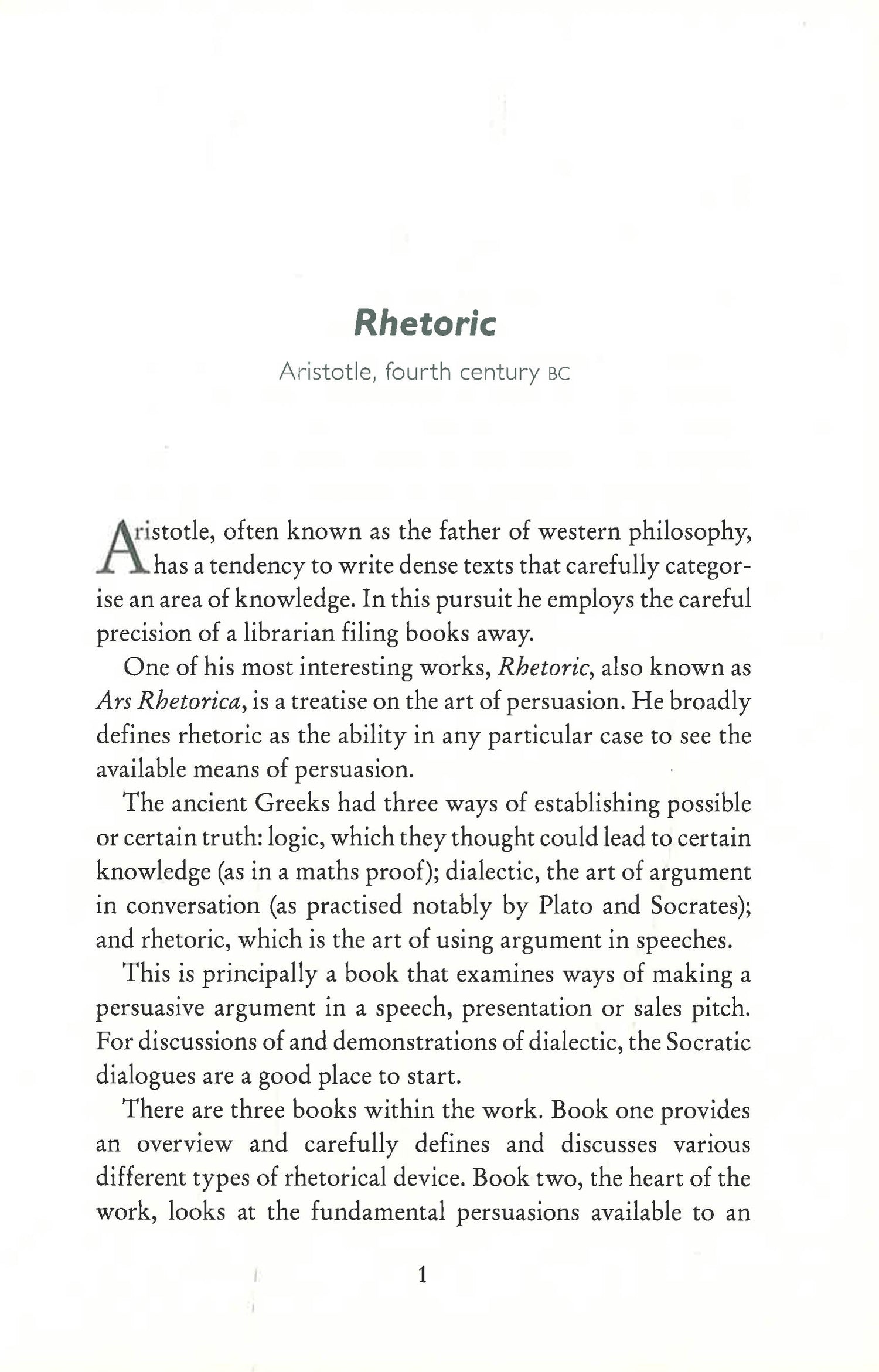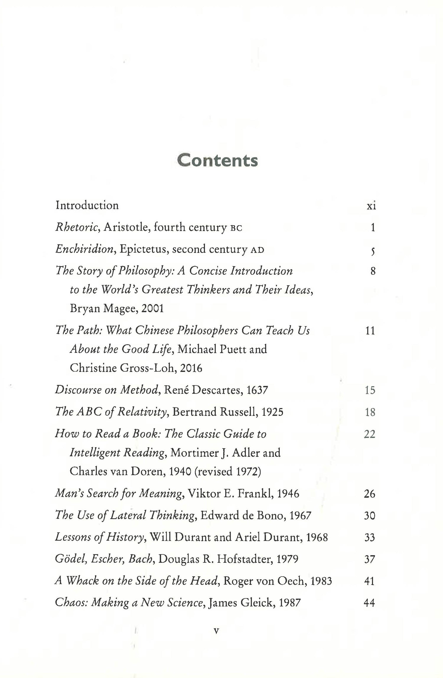 Each book is summarised to convey a brief idea of what each one has to offer the interested reader, while a 'Speed Read' for each book delivers a quick sense of what each book is like to read and a highly compressed summary of the main points of the book in question. The titles covered include thought-provoking classics on psychology, mindfulness, rationality, the brain, mathematical and economic thought and practical philosophy.