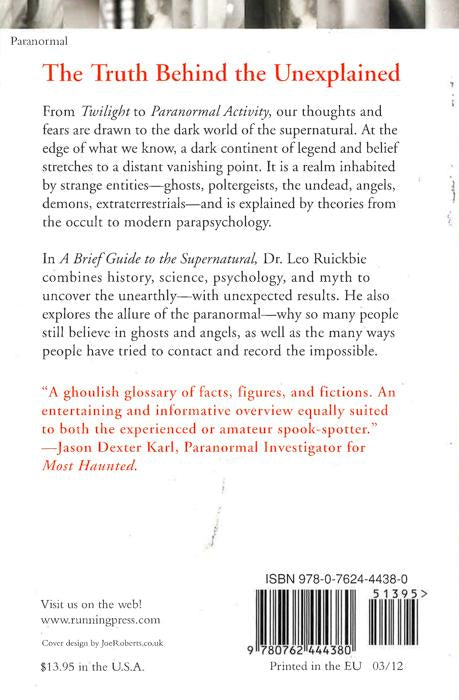 What is the supernatural and why is it important? From "Most Haunted" to "Buffy the Vampire Slayer," from "Underworld "to "Twilight," from "Doom "to "Resident Evil," our imagination is forever drawn to this dark world - and for good reasons. "The Brief Guide to the Supernatural" goes in search of the unearthly with unexpected results. Combining history, psychology and parapsychology, Dr Leo Ruickbie explores the myths and possible realities of the paranormal - ghosts, the undead, angels, demons and UFOs - as well as the many ways people have tried to contact and record the impossible from magic to spiritualism to science. You may find the results unsettling. Included are several experiments to try at home - be warned!