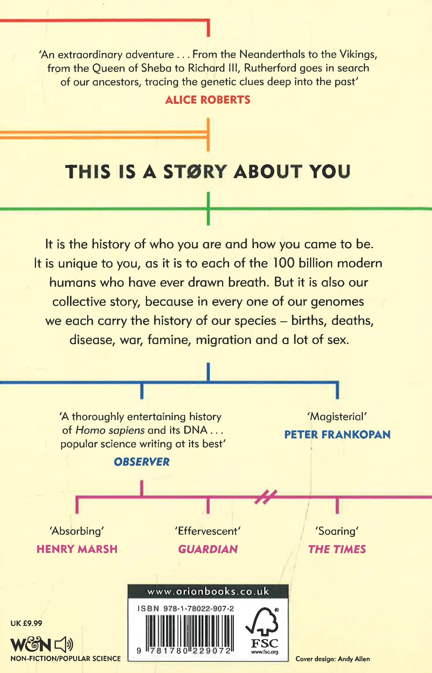 A brilliant, authoritative, surprising, captivating introduction to human genetics. You'll be spellbound' Brian Cox This is a story about you. It is the history of who you are and how you came to be. It is unique to you, as it is to each of the 100 billion modern humans who have ever drawn breath. But it is also our collective story, because in every one of our genomes we each carry the history of our species - births, deaths, disease, war, famine, migration and a lot of sex.