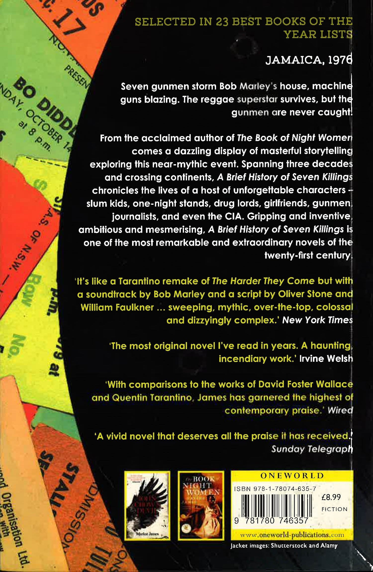 1976 Seven gunmen storm Bob Marley's house, machine guns blazing. The reggae superstar survives, but the gunmen are never caught. From the acclaimed author of The Book of Night Women comes a dazzling display of masterful storytelling exploring this near-mythic event. Spanning three decades and crossing continents, A Brief History of Seven Killings chronicles the lives of a host of unforgettable characters - slum kids, one-night stands, drug lords, girlfriends, gunmen, journalists, and even the CIA. Gripping and inventive, ambitious and mesmerising, A Brief History of Seven Killings is one of the most remarkable and extraordinary novels of the twenty-first century.