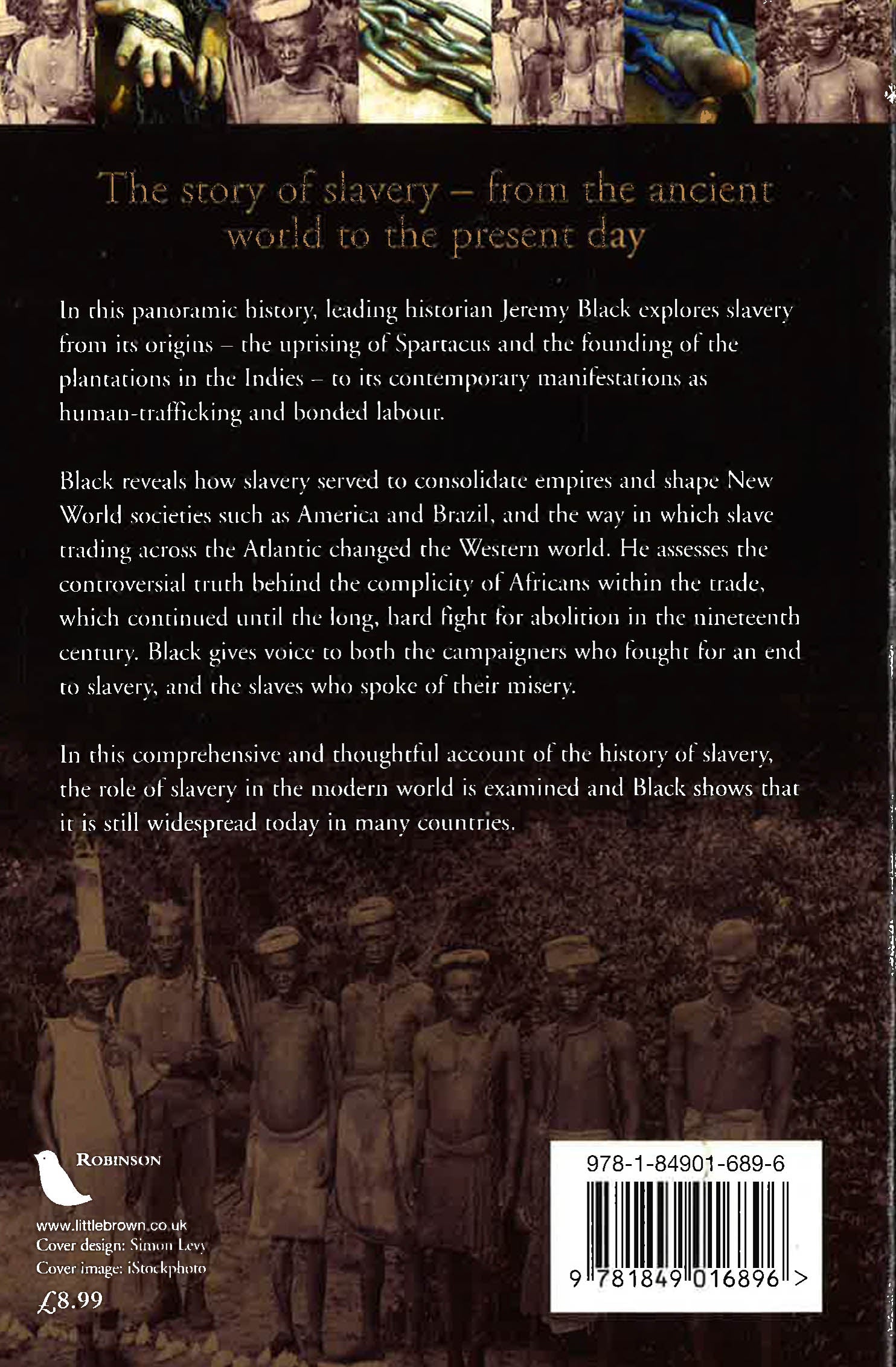 A thought-provoking and important book that raises essential issues crucial not only for our past but also the present day. In this panoramic history, Jeremy Black tells how slavery was first developed in the ancient world, and reaches all the way to present day and the contemporary crimes of trafficking and bonded labour. He shows how slavery has taken many forms throughout history and across the world - from the uprising of Spartacus, the plantations of the Indies, and the murderous forced labour of the gulags and concentration camps. Slavery helped consolidated transoceanic empires and helped mould new world societies such as America and Brazil. In the Atlantic trade, Black also looks at the controversial area of how complicit the African peoples were in the trade. He then charts the long fight for abolition in the 19th century, including both the campaigners as well as the lost voices of the slaves themselves who spoke of their misery. Finally, as Black points out, slavery has not been completely abolished today and coerced labour can be found closer to home than is comfortable.