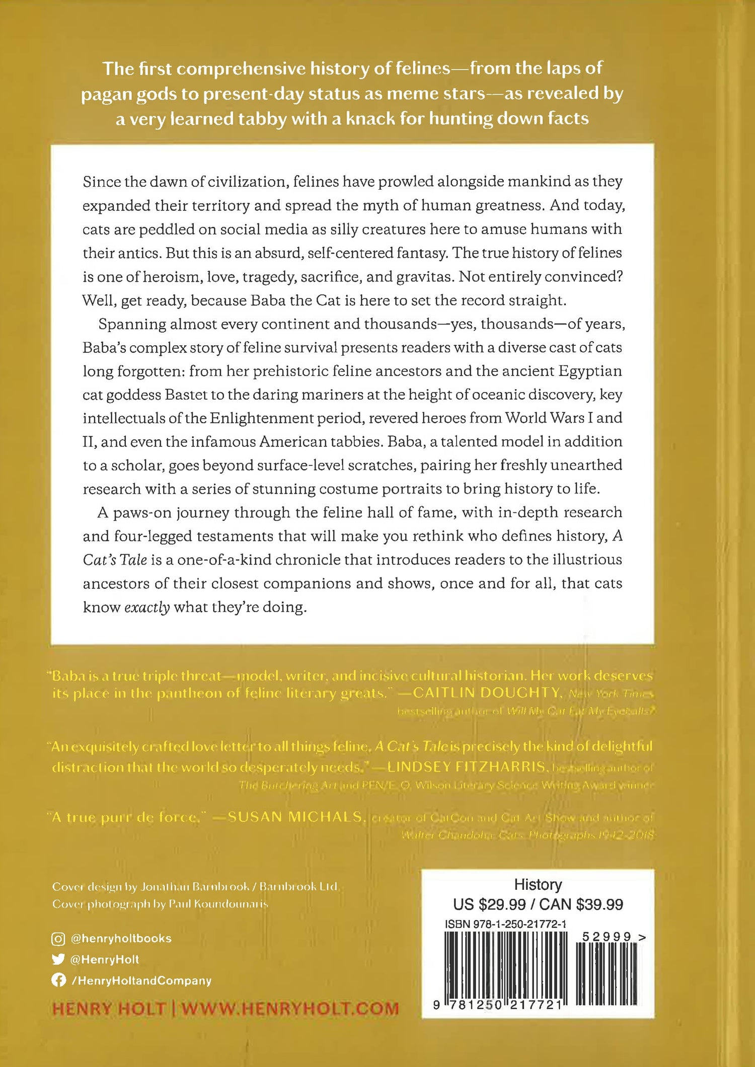 A Cat’s Tale will be the first true history of feline kind: our origins; our exploits; the evolution of our relationship with our human companions; and the surprising ways in which our history parallels that of humanity. Heretofore, our ambassadors to the human world have been fictitious, lumbering louts like Garfield - or real-life cats simply esteemed for being cute, such as Lil Bub. I’m here to tell you real cats do not hate Nermal or Mondays - we don’t use a weekly calendar at all. And real cats don’t pose for selfies. With A Cat’s Tale, I am here to correct the record and expose the reality of feline greatness. Our story spans tens of thousands of miles and many thousands of years. It is a story that humanity has so far stubbornly refused to learn, ignored in favor of a fantasy history beginning with a lie: the absurd notion that you domesticated us. Really? If that’s what you believe, go find a bobcat and try. From the prehistoric Felis (a large mammal from which all domestic cats have descended) to ancient Egyptian cat goddess, key cats of the Enlightenment to swashbuckling pirate felines and infamous American tabbies, the story of our kind is told here in its totality. And perhaps, dear reader, you will rightfully come to this book for the cats - but, I promise, you will walk away with a fun and interesting history lesson to boot.