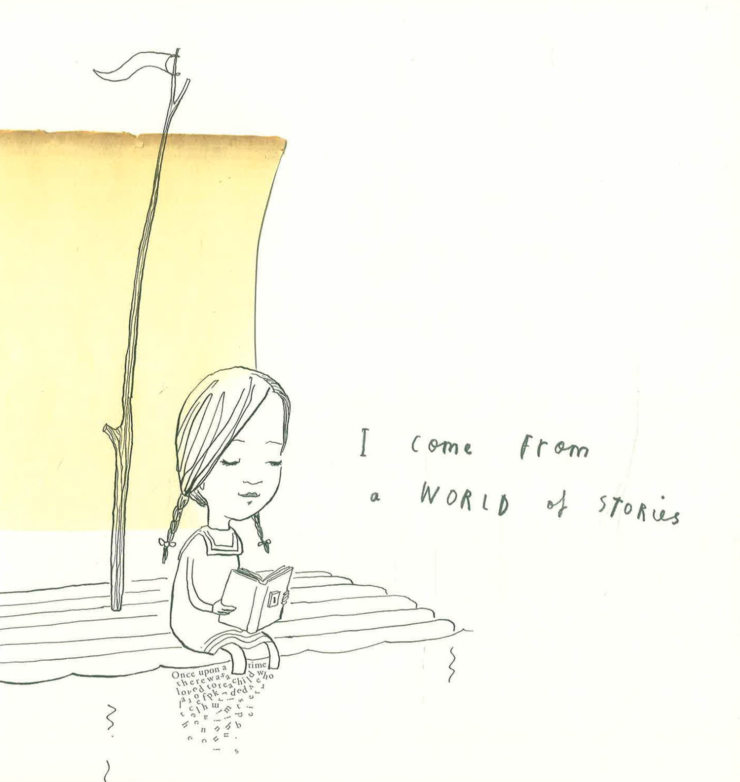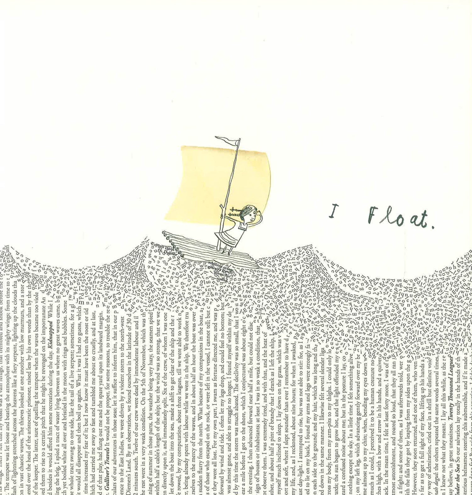 A little girl sails her raft across a sea of words, arriving at the house of a small boy and calling him away on an adventure. Through forests of fairy tales and across mountains of make-believe, the two travel together on a fantastical journey that unlocks the boy’s imagination. Now a lifetime of magic and adventure lies ahead of him . . . but who will be next? Combining elegant images by Oliver Jeffers and Sam Winston’s typographical landscapes shaped from excerpts of children’s classics and lullabies, A Child of Books is a stunning prose poem on the rewards of reading and sharing stories—an immersive and unforgettable reading experience that readers will want to pass on to others.