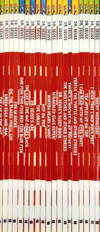 A wonderful slipcase collection of 20 classic Dr. Seuss titles.A classic collection of twenty of Dr. Seuss's best-loved stories - in one wonderful case!Includes:The Cat in the HatThe Cat in the Hat Comes BackGreen Eggs and HamThe LoraxFox in SocksOne Fish Two Fish Red Fish Blue FishOh, The Places You'll Go!Hop on PopDr. Seuss's ABCDr. Seuss's Sleep BookScrambled Eggs Super!The Sneetches and Other StoriesYertle the Turtle and Other StoriesHorton Hears a WhoI Can Read With My Eyes Shut!Mr Brown Can Moo! Can You?Ten Apples Up on TopThere's a Wocket in My Pocket!I Wish That I Had Duck FeetWacky WednesdayThe Dr. Seuss collection that every child needs!