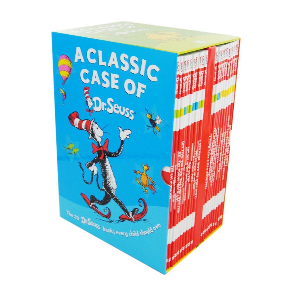 A Collection of some of the best of Dr Seuss' Books! Titles in this Set: The Cat In Hat When the Cat in the Hat steps in on the mat, Sally and her brother are in for a roller-coaster ride of havoc and mayhem! With his unique combination of hilarious stories, zany pictures and riotous rhymes, Dr. Seuss has been delighting young children and helping them learn to read for over fifty years. Green Eggs and Ham With a rhyming vocabulary of only 50 words, this hilarious book tells the story of Sam-I-Am’s relentless pursuit of a grumpy individual who refuses to eat a plate of green eggs and ham. Packed with a uniquely Seussian blend of zany artwork, riotous rhyme and off-the-wall humour, this miniature hardback edition makes the perfect stocking filler and keepsake for all lovers of Dr. Seuss, young and old. And, as Sam-I-Am’s preseverance wins the day, it teaches us all that we cannot really know what we like until we have tried it! Oh The Places You'll Go! Follow our hero as he navigates his way across a challenging landscape fraught with dangers such as howling Hakken-Kraks, until he finally makes it through to the other side. A must-have for anyone who is making changes and moving on, as well as a great rhyming read for younger children. One Fish Two Fish Red Fish Blue Fish This beautiful mini edition HB is available for the first time as a stand alone book. Packed full of boxing Goxes and winking Yinks, it explores the worlds of colours, numbers and words. In this hilarious world of opposites, colours, numbers and nonsense, Dr. Seuss paints a crazy world of singing Yings, boxing Goxes and seven hump Wumps. Fox In Socks In this delightful yarn the irrepressible Fox in Socks introduces a baffled Mr Knox to some of the craziest tongue-twisters since Peter Piper picked his peck of pickled peppers. Children will delight in tying their tongues in knots, while the rhyming repetition will help them learn to read. Packed with a uniquely Seussian blend of zany artwork, riotous rhyme and off-the-wall humour, this miniature hardback edition of a highly popular book makes the perfect stocking filler and keepsake for all lovers of Dr. Seuss, young and old. The Cat in the Hat Comes Back When the Cat in the Hat comes back, he’s soon up to his old tricks ably assisted by a team of tiny helpers that he keeps in his hat! Hop on Pop House, Mouse! Hop, Pop! Cup, Pup! Learning about words that rhyme has never been more fun – simply change the first letter and the whole word changes! Dr. Seuss' ABC From Aunt Annie’s alligator to the colourful Zizzer-Zazzer-Zuzz, the result is a joyful parade through the alphabet with some of Dr. Seuss' kookiest characters. Ten Apples Up On Top A lion, a dog, and a tiger are having a contest--can they get ten apples piled up on top of their heads? You better believe it! This first counting book works as a teaching tool as well as a funny story. I Can Read With My Eyes Shut This Celebration of the joys of reading encourages us to open our eyes and take pride in out reading, so we'll learn lots of stuff and end up succeeding! I Wish I Had Duck Feet Imagine having feet like a duck, antlers like a deer or an elephant's trunk. You may find you're better off just way you are! Wacky Wednesday Tortoises in trees, teachers on rollerskates, pigs without legs - just how wacky can a wednesday get? Turn the pages and have fun finding out! Mr. Brown Can Moo! Can You? Moo moo! Hoo hoo! Cock-a-doodle-doo! Oh, the wonderful sounds Mr. Brown can do. Now see if you can do them too! This fabulous book is ideal for teaching young children all about noises! There's A Wocket In My Pocket With a host of crazy crackpot creatures, from wockets in pockets to waskets in baskets, this hilarious books helps young children set off on the road to reading. This delightful book forms part of the second stage in HarperCollins' major Dr. Seuss rebrand programme. With the relaunch of 10 more titles in August 2003, such all-time favourites as How the Grinch Stole Christmas!, Mr. Brown Can Moo! Can You? and Dr. Seuss' Sleep Book boast bright new covers that incorporate much needed guidance on reading levels: Blue Back Books are for parents to share with young children, Green Back Books are for budding readers to tackle on their own, and Yellow Back Books are for older, more fluent readers to enjoy. There's a Wocket in My Pocket! belongs to the Blue Back Book range. The Sneetches and Other Stories The Star-Bellied Sneetches think they’re much better than the Plain-Bellied Sneetches. But they’re about to discover that it’s what’s inside that really matters! The Lorax In this haunting fable about the dangers of destroying our forests and woodlands, the long-suffering Lorax struggles to save all the Truffula Trees from the wicked Once-ler’s axe. Dr. Seuss' Sleep Book Full of wonderful yawning creatures who spread sleep thoughts at bedtime, this book is the perfect remedy for children who don’t want to go to sleep. Horton Hears A Who! no one else believes they are there! But Horton eventually convinces everyone that ‘A person’s a person, no matter how small’! Yertle The Turtle and Other Stories In this hilarious book, featuring three timeless fables, Dr. Seuss explores the pitfalls of growing too big for your boots! Scrambled Eggs Super! ‘Scrambled Eggs Super!’ includes eggs of the Stroodel, who’s sort of a stork but with fur like a poodle, and of the moth-watching Sneth – a bird who’s so big she scares people to death!