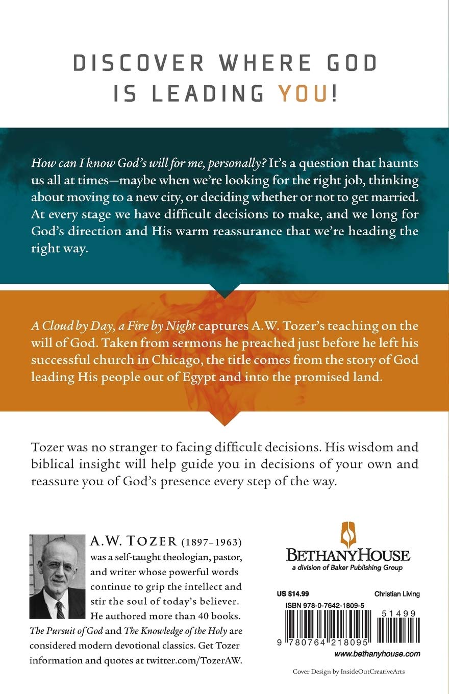 How can I know God's will for me, personally? It's a question that haunts us all at times--maybe when we're looking for the right job, thinking about moving to a new city, or deciding whether or not to get married. At every stage we have difficult decisions to make, and we long for God's direction and his warm reassurance that we're heading the right way. A Cloud by Day, a Fire by Night captures Tozer's teaching on the will of God taken from sermons he preached just before he left his successful church in Chicago. Tozer was no stranger to facing difficult decisions, and his wisdom and biblical insight will help guide you in decisions of your own. The title comes from the story of God leading his people out of Egypt into the promised land. In the same way, let this book help reveal where he is leading and reassure you that he will be by your side every step of the way.