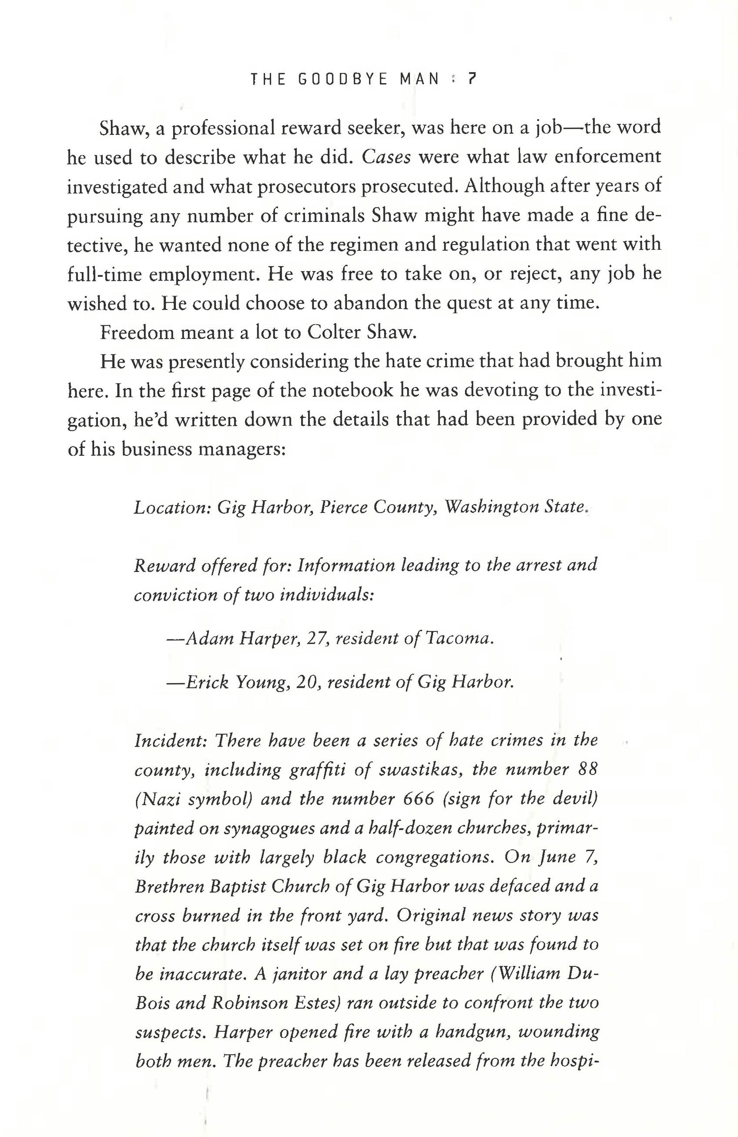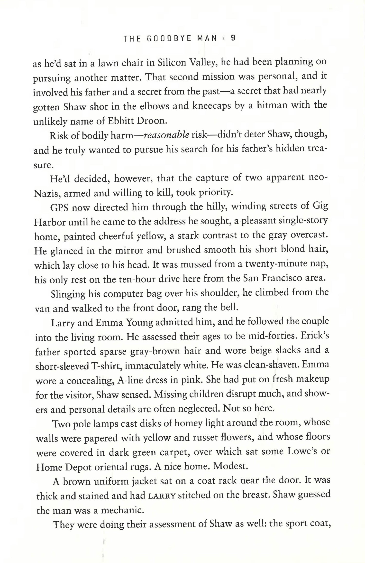 In the wilderness of Washington State, expert tracker Colter Shaw has located two young men accused of a terrible hate crime. But when his pursuit takes a shocking and tragic turn, Shaw becomes desperate to discover what went so horribly wrong and if he is to blame. Shaw's search for answers leads him to a shadowy organization that bills itself as a grief support group. But is it truly it a community that consoles the bereaved? Or a dangerous cult with a growing body count? Undercover, Shaw joins the mysterious group, risking everything despite the fact that no reward is on offer. He soon finds that some people will stop at nothing to keep their secrets hidden . . . and to make sure that he or those close to him say "goodbye" forever.