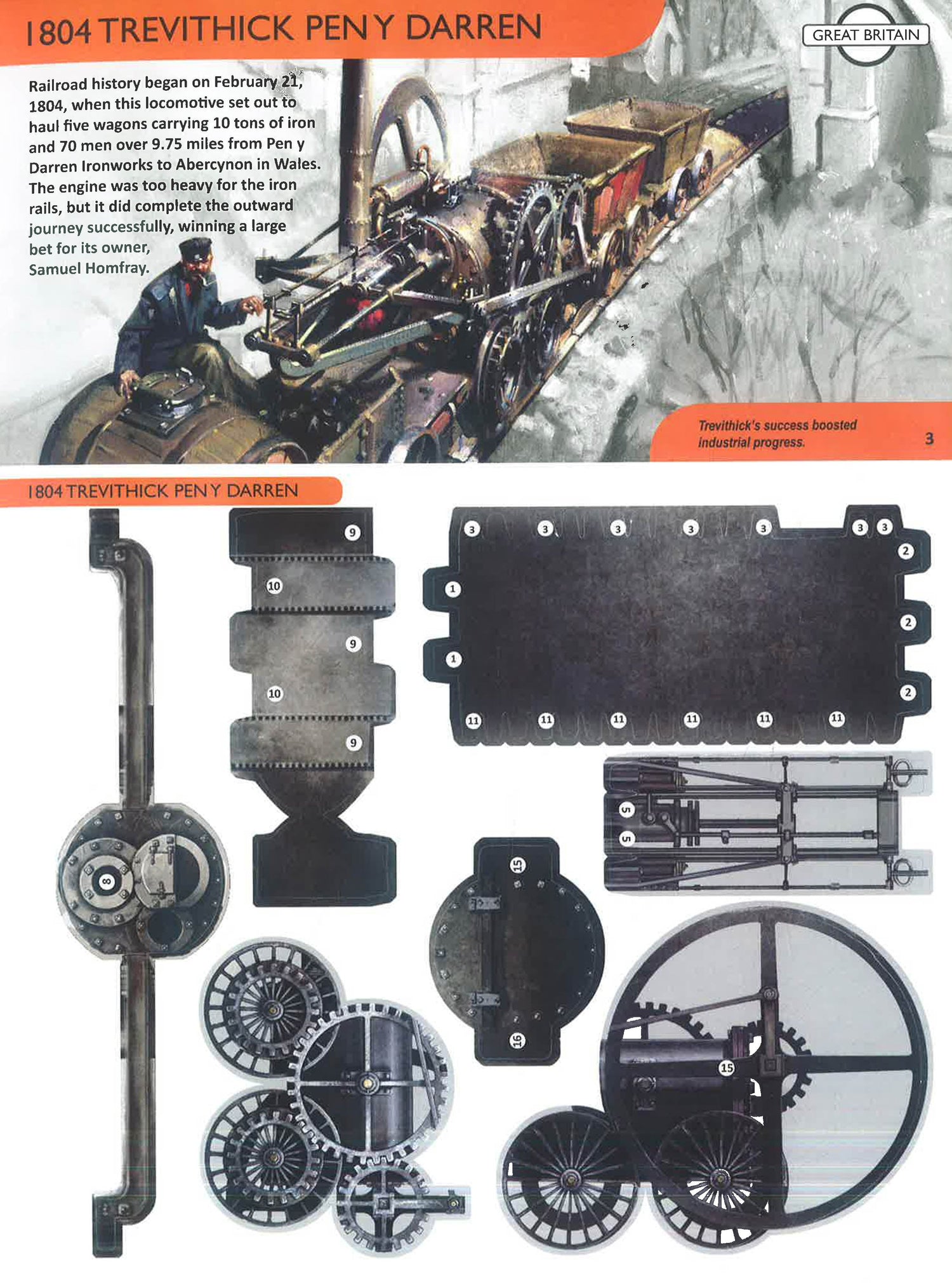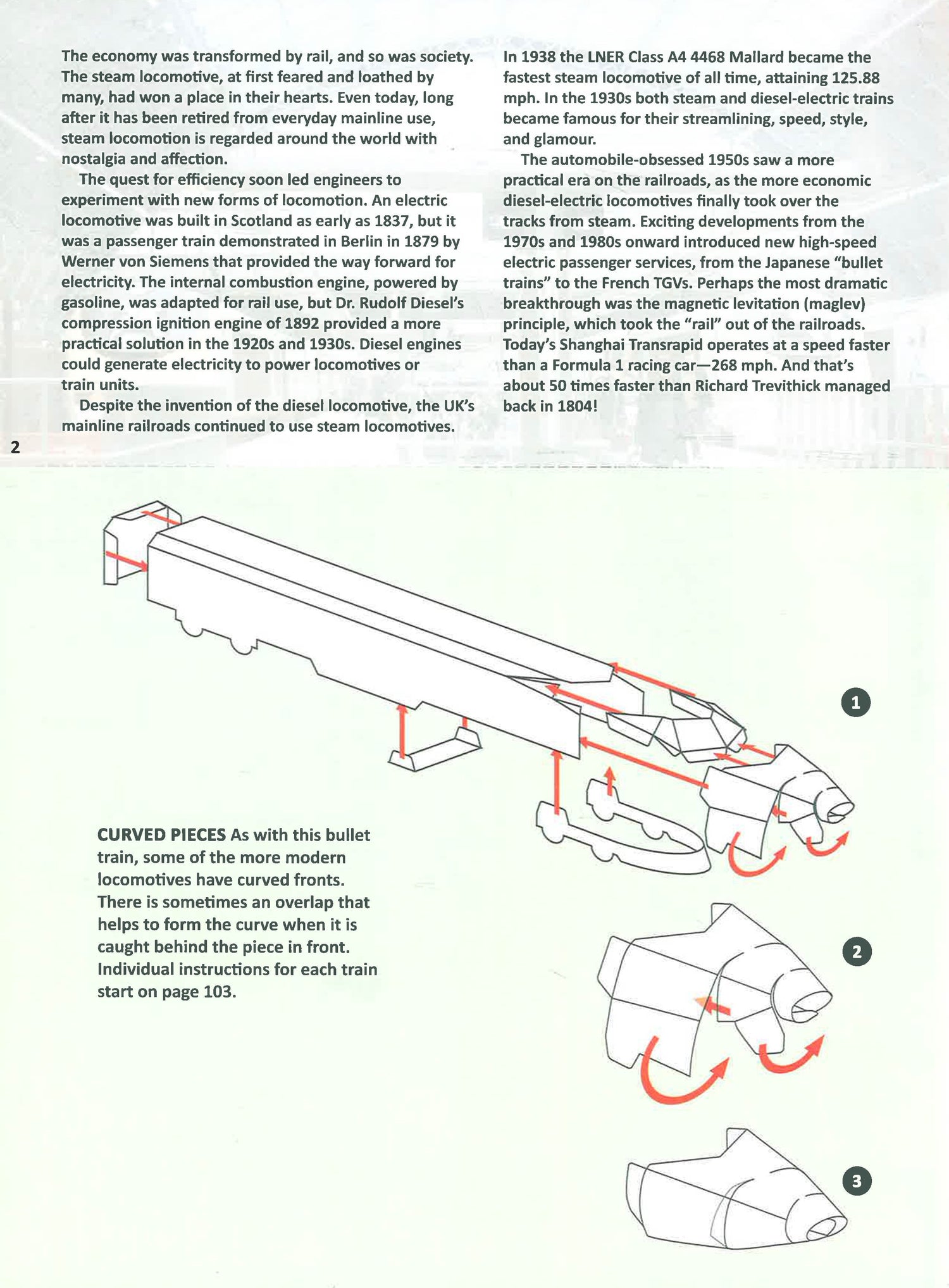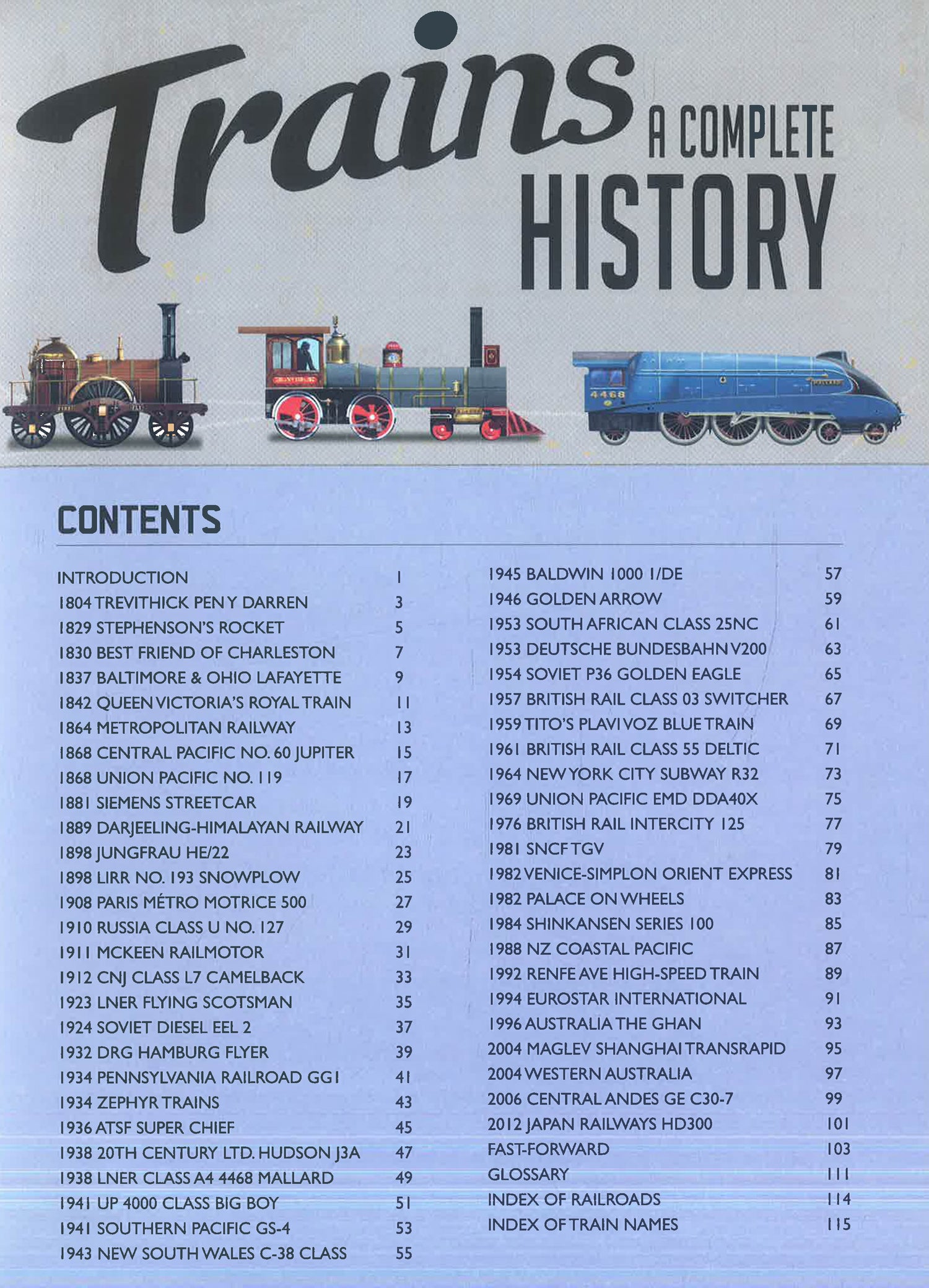 Trains: A Complete History provides an excellent overview of the train models that were groundbreaking in their respective eras. The scope of progress comes to life on these pages—from the 1830 Best Friend of Charleston, whose passengers were to said to have traveled “on the wings of the wind” at a whopping top speed of twenty-five miles per hour, to the 2012 hybrid-powered Japan Railway HD300, which uses 36 percent less fuel than traditional trains and travels at speeds up to seventy miles per hour.