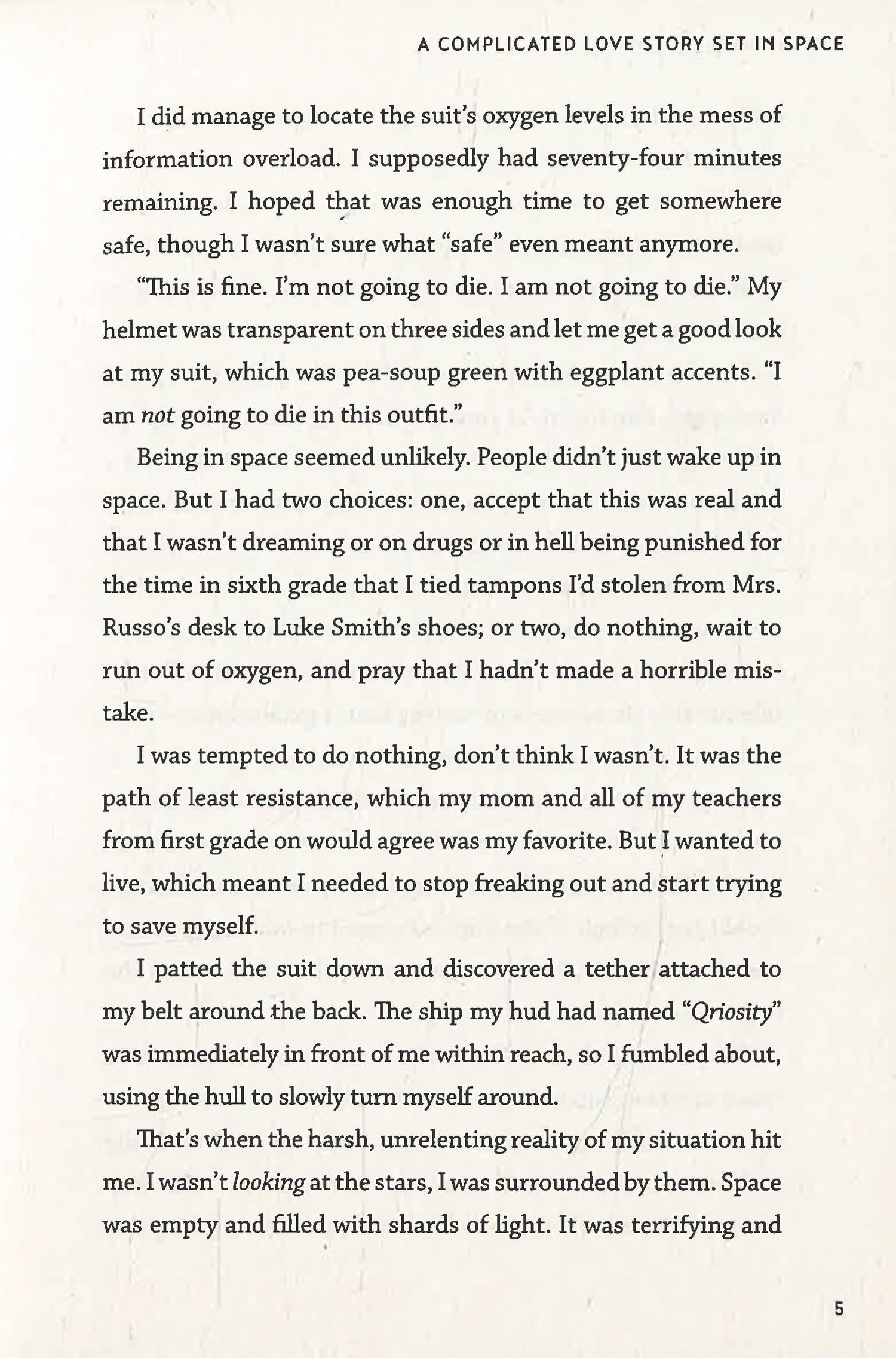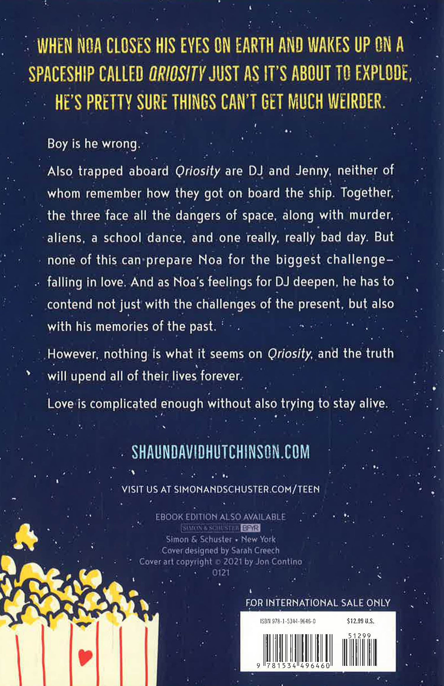 Trapped aboard Qriosity are also DJ and Jenny, neither of whom remember how they got onboard the ship. Together, the three face all the dangers of space, along with murder, aliens, a school dance, and one really, really bad day. But none of this can prepare Noa for the biggest challenge--falling in love. And as Noa's feelings for DJ deepen, he has to contend not just with the challenges of the present, but also with his memories of the past.