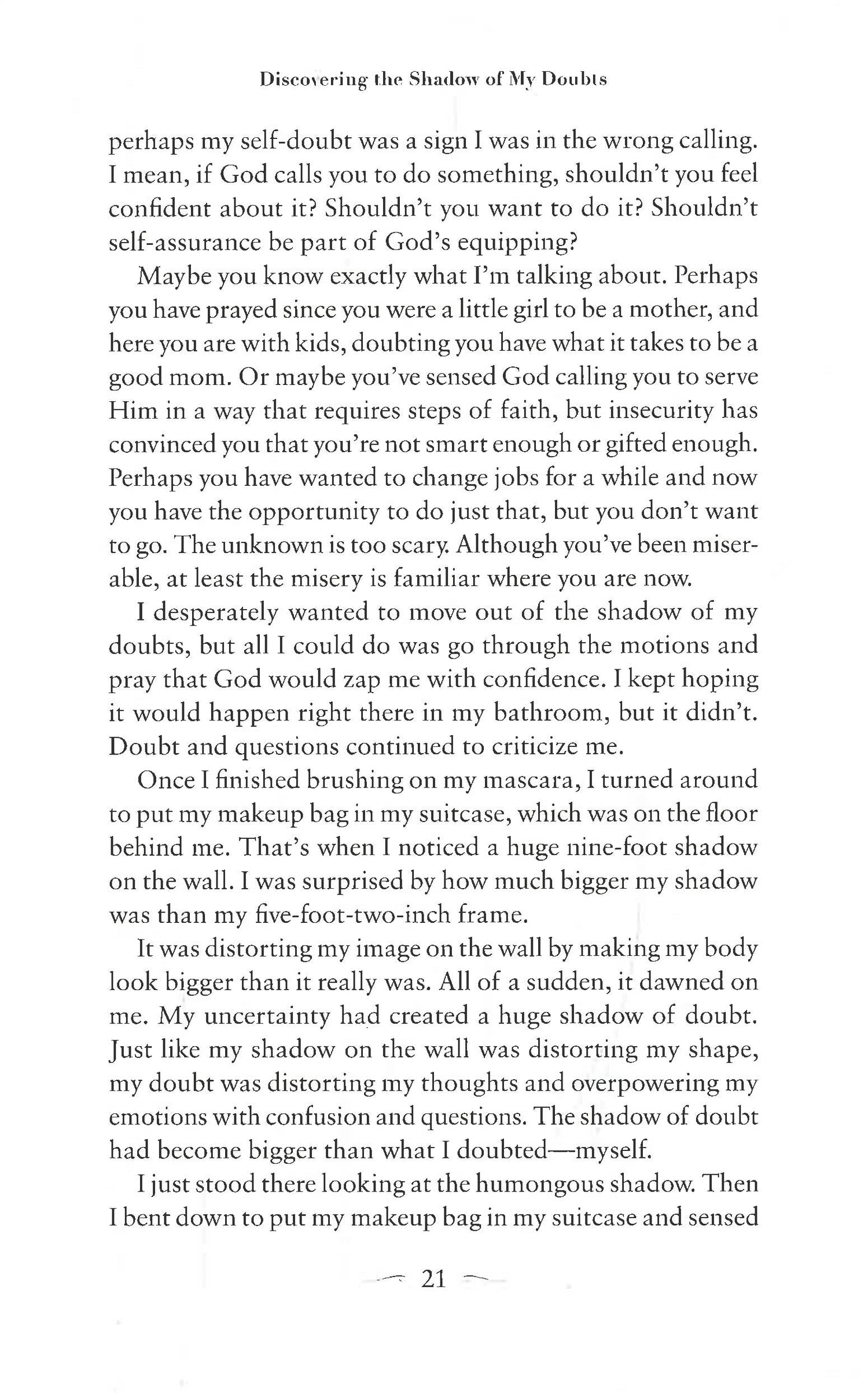 Powerful Scripture-based prayers are at the end of each chapter, along with Bible study questions and 31 promises to replace our most common self-doubts.