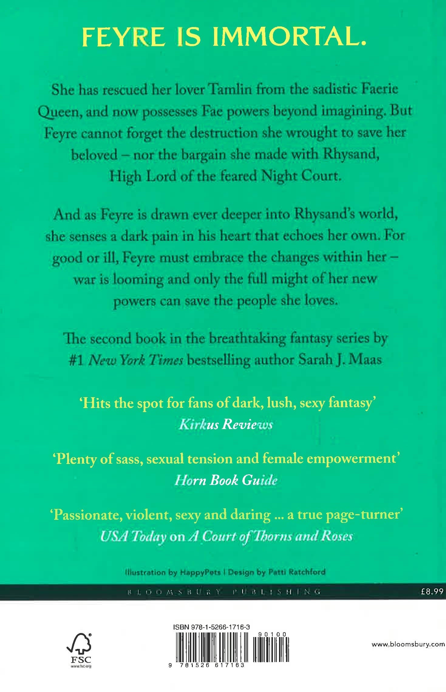 Nor has Feyre forgotten her bargain with Rhysand, the mesmerising High Lord of the feared Night Court. As Feyre navigates his dark web of political games and tantalising promises, a greater evil looms - and she might be key to stopping it.