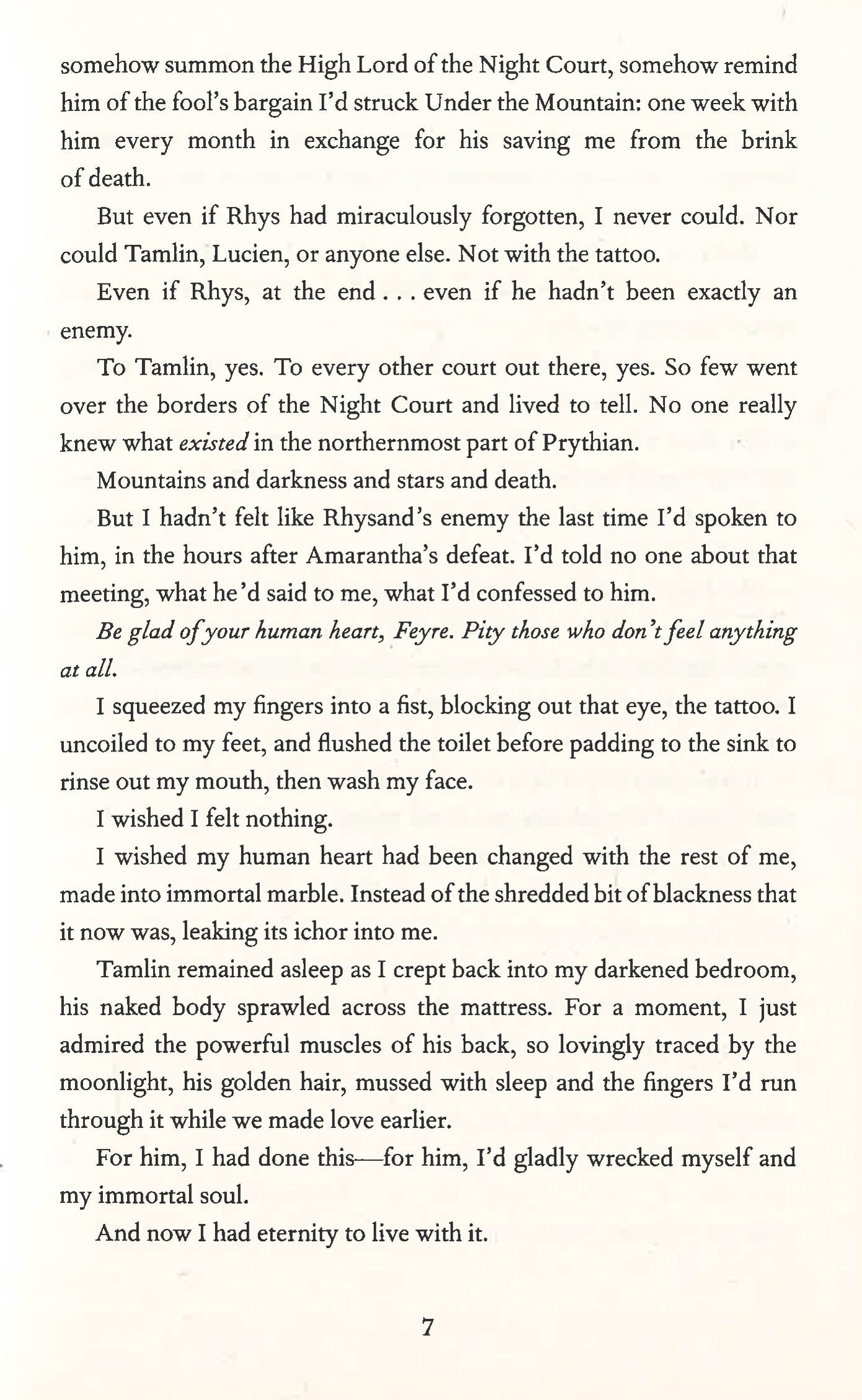 Feyre survived Amarantha's clutches to return to the Spring Court - but at a steep cost. Though she now possesses the powers of the High Fae, her heart remains human, and it can't forget the terrible deeds she performed to save Tamlin's people.