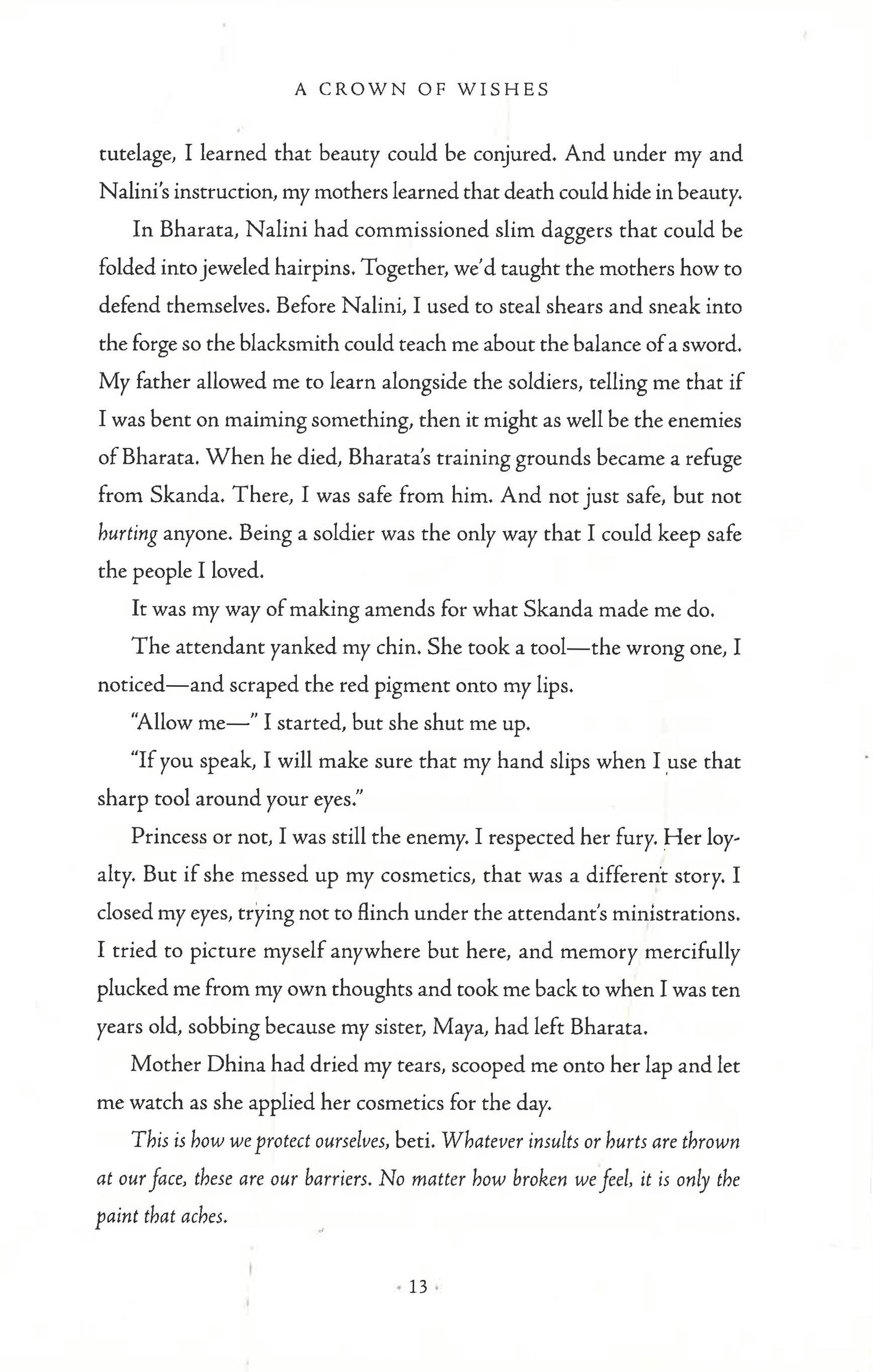 Gauri, the princess of Bharata, has been taken as a prisoner of war by her kingdom's enemies. Faced with a future of exile and scorn, Gauri has nothing left to lose. Hope unexpectedly comes in the form of Vikram, the cunning prince of a neighbouring land and her sworn enemy kingdom. Unsatisfied with becoming a mere puppet king, Vikram offers Gauri a chance to win back her kingdom in exchange for her battle prowess. Together, they'll have to set aside their differences and team up to win the Tournament of Wishes-a competition held in a mythical city where the Lord of Wealth promises a wish to the victor. Reaching the tournament is just the beginning. Once they arrive, danger takes on new shapes: poisonous courtesans and mischievous story birds, a feast of fears and twisted fairy revels. Every which way they turn new trials will test their wit and strength. But what Gauri and Vikram will soon discover is that there's nothing more dangerous than what they most desire.