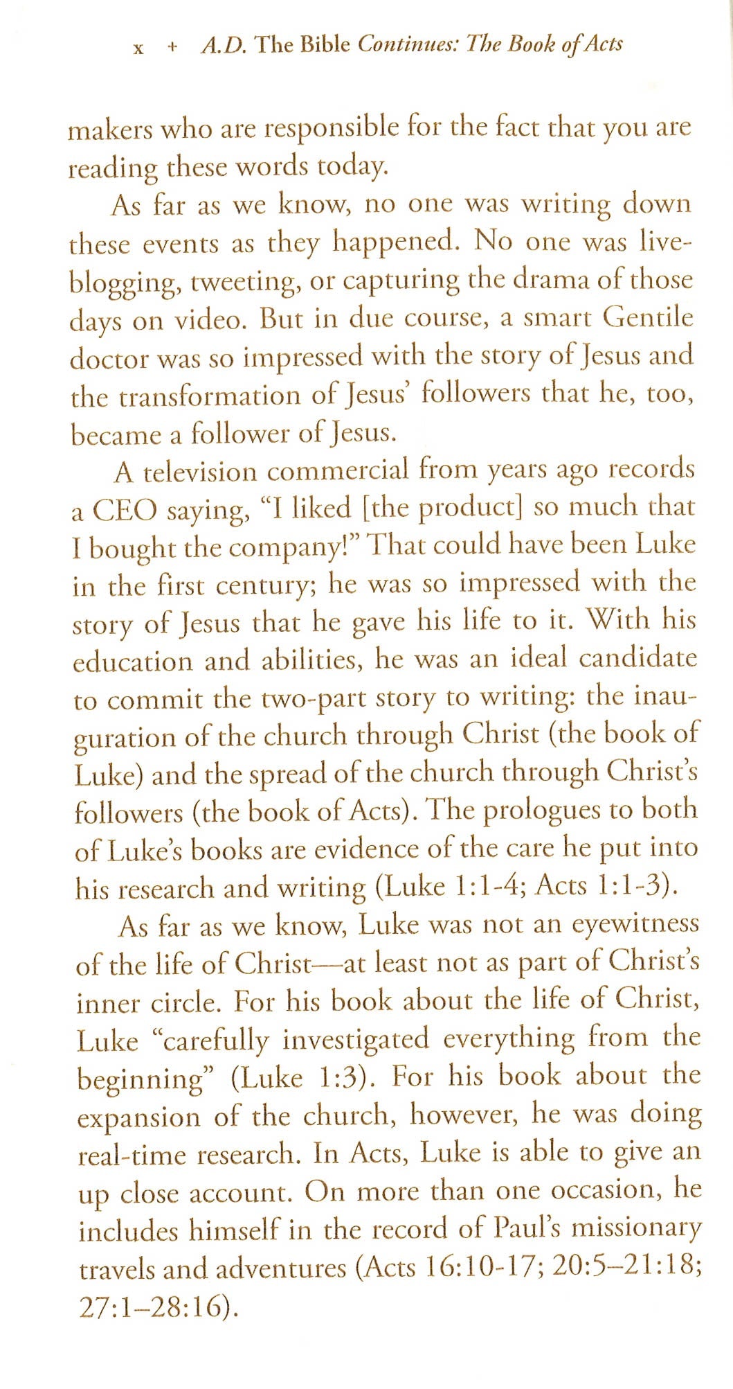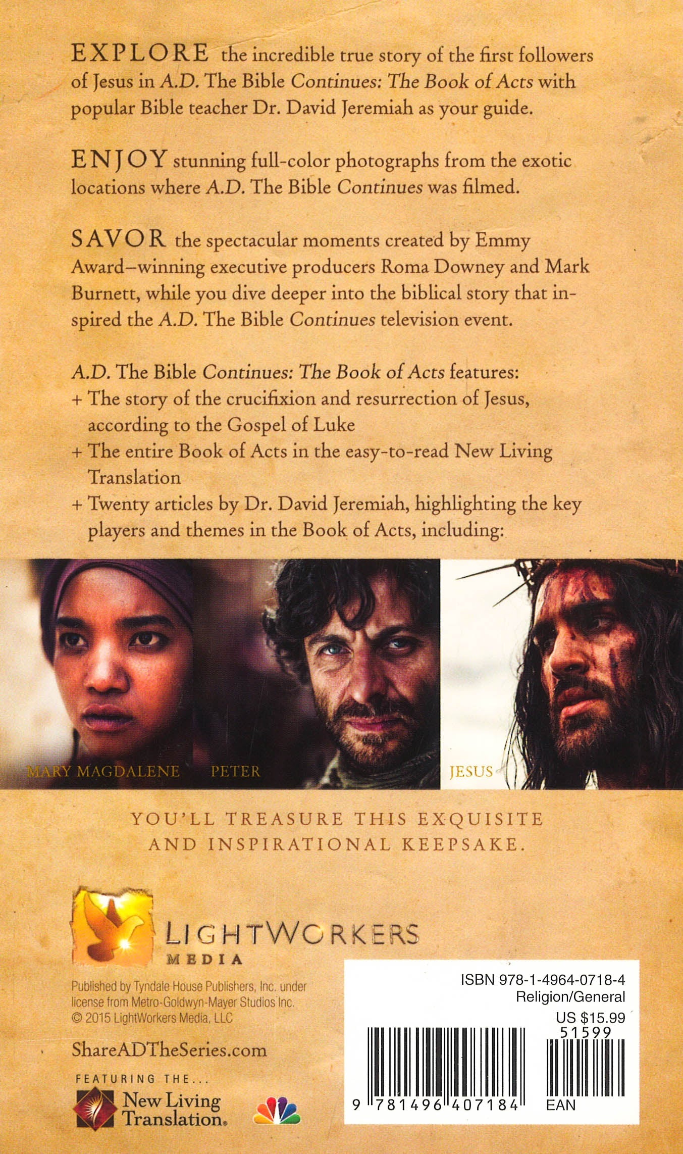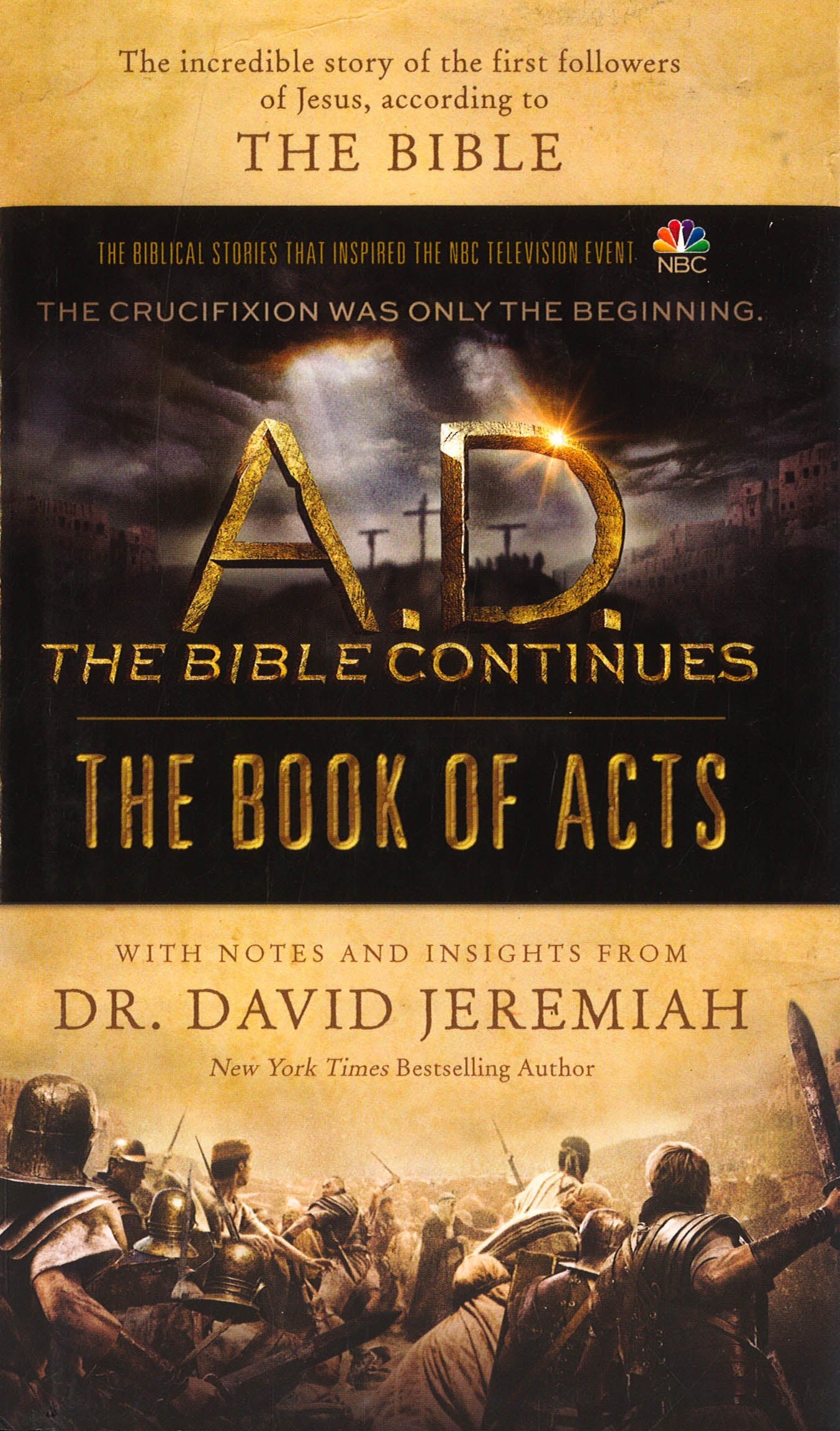 A.D. The Bible Continues: The Book of Acts is a perfect gift for those who want to explore the true story behind the riveting NBC television series A.D. The Bible Continues.Popular author and Bible teacher Dr. David Jeremiah will be your guide to the book of Acts, which tells the true story of how the first band of followers of Jesus quickly grew into an international movement after his death and resurrection. Discover what motivated and inspired this small group and how the message of Jesus set the world on fire.It's the beginning of a whole new era, and you can have a front-row seat with A.D. The Bible Continues: The Book of Acts.