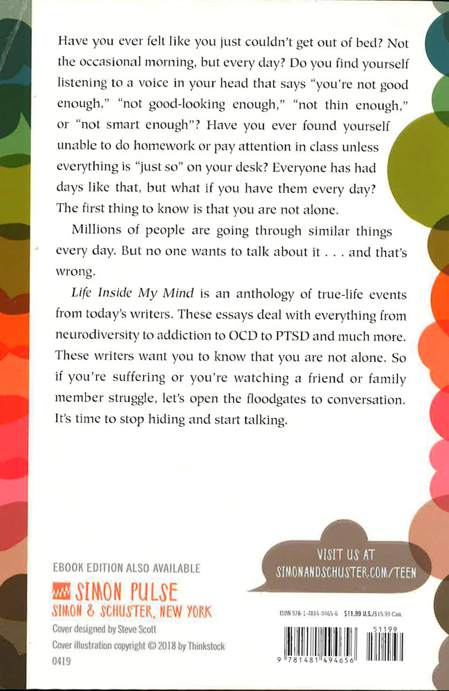 Life Inside My Mind is an anthology of true-life events from writers of this generation, for this generation. These essays tackle everything from neurodiversity to addiction to OCD to PTSD and much more. The goals of this book range from providing a home to those who are feeling alone, awareness to those who are witnessing a friend or family member struggle, and to open the floodgates to conversation.