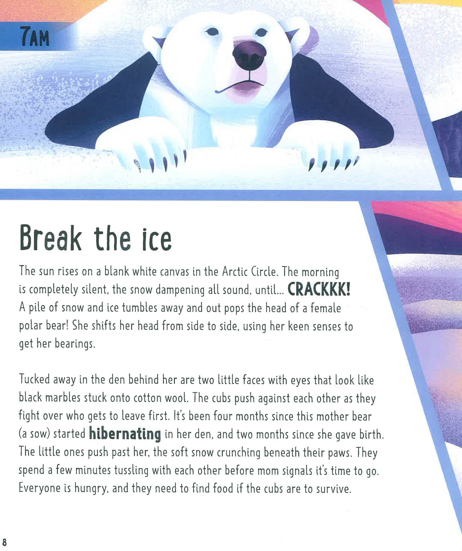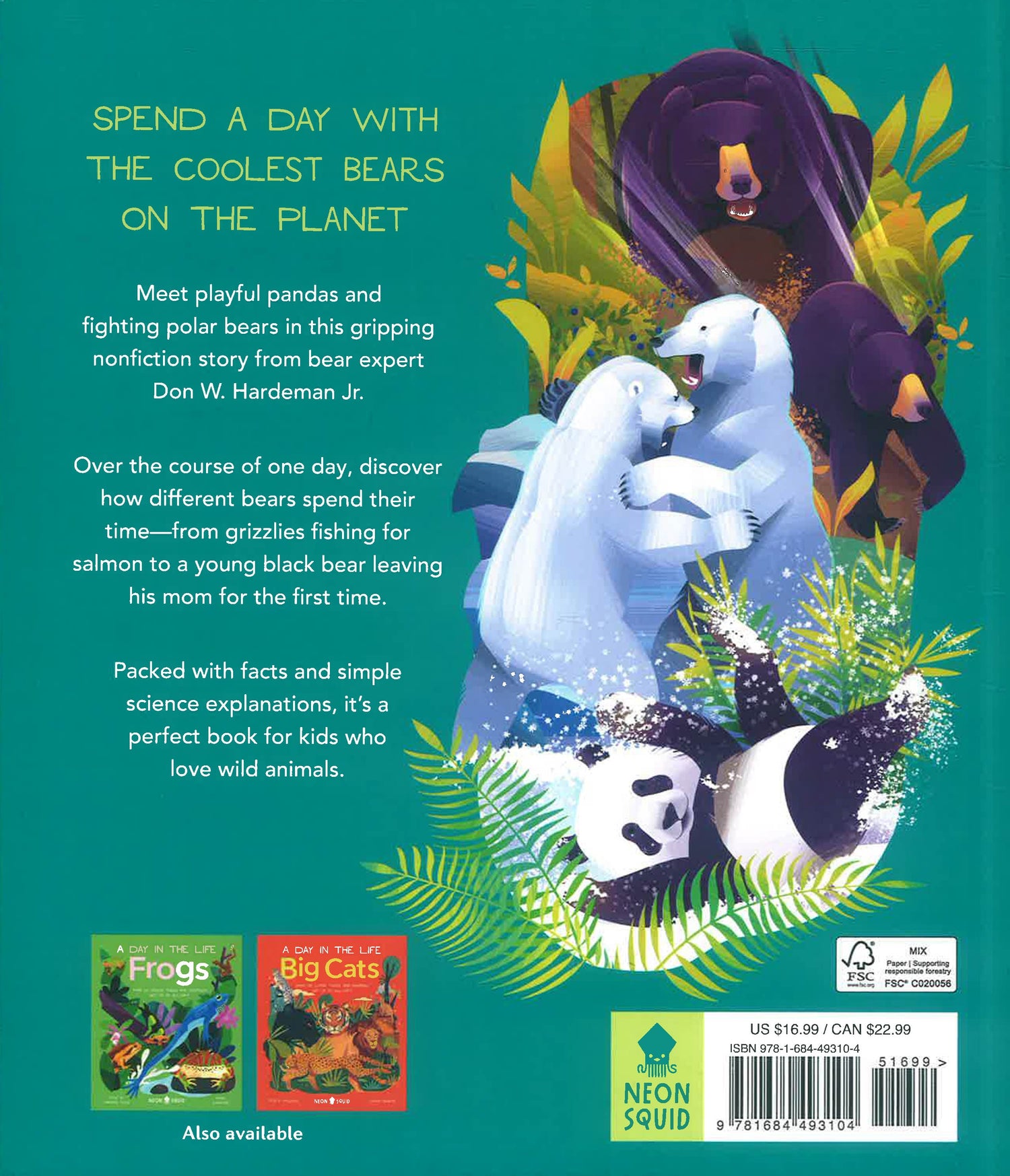 Set over a 24-hour period, meet black bears, grizzlies, and cute polar bear cubs in this kids' nonfiction book by expert Don Hardeman Jr.