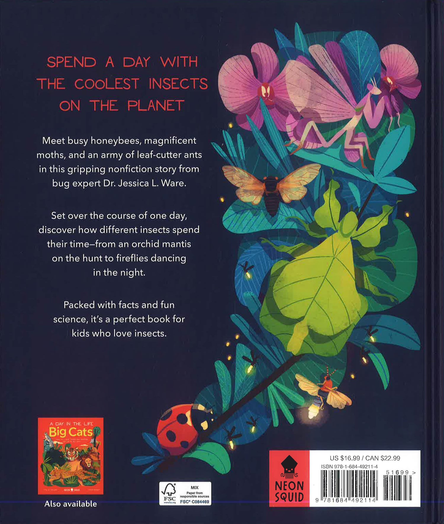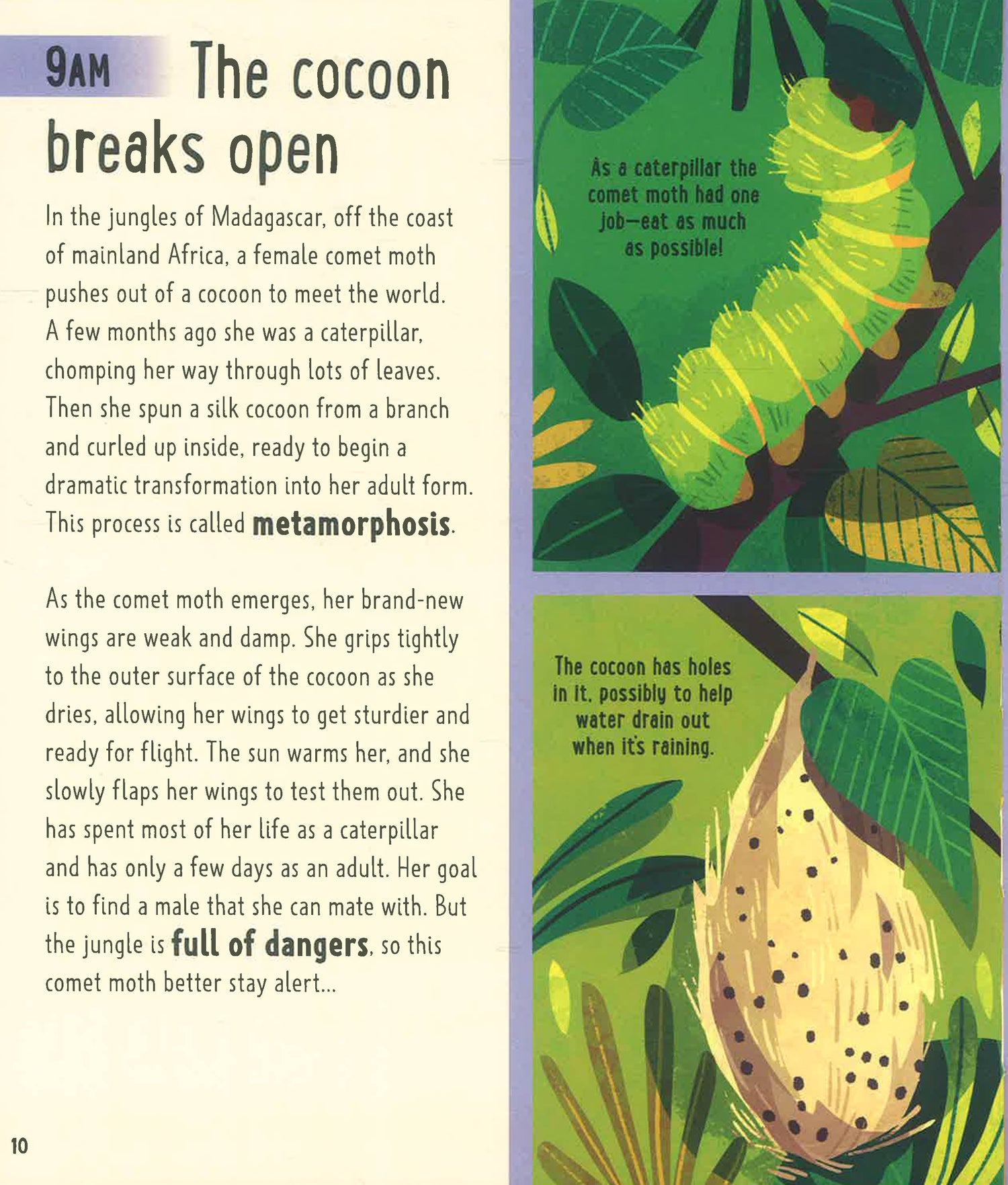 Set over a 24-hour period, meet busy honeybees, transforming caterpillars, and an army of leafcutter ants in this kids' nonfiction book about the coolest insects on Earth.