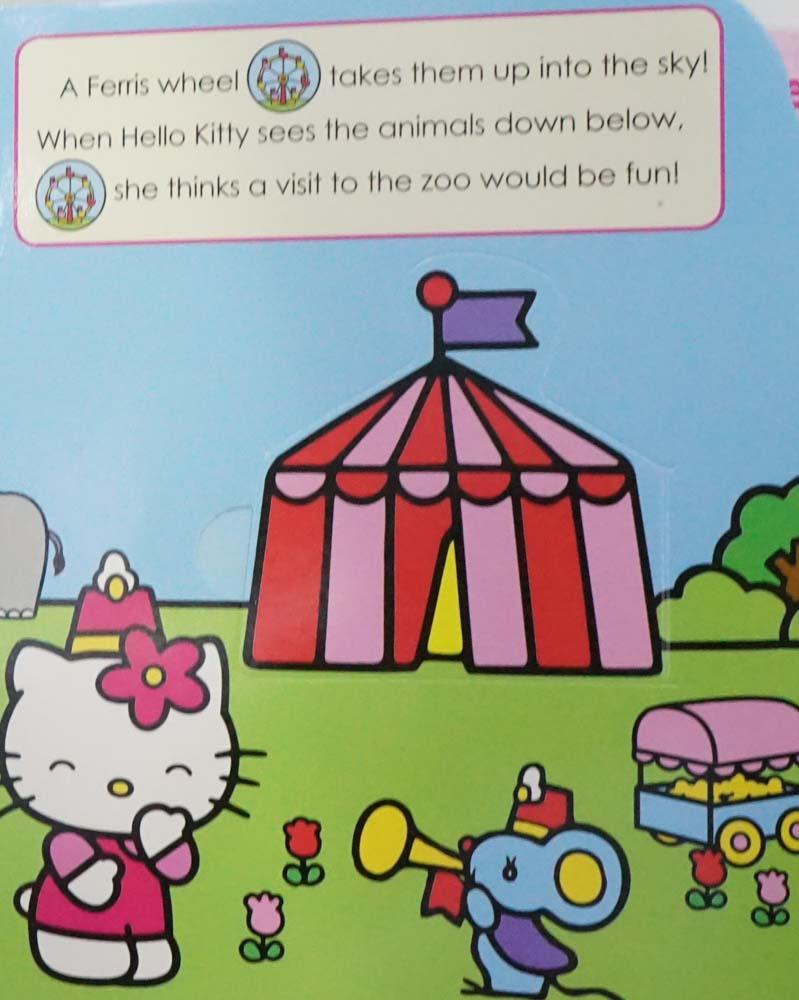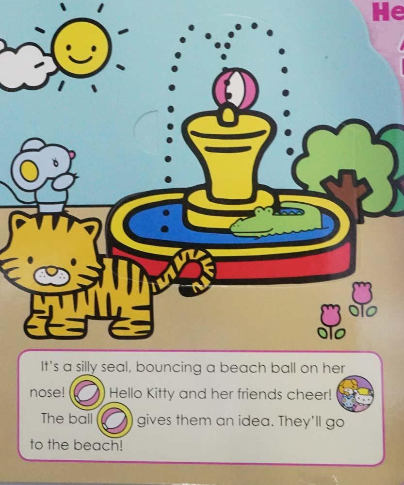This Hello Kitty sound book has an attached four-button audio module that enables children to add sound to the story. Children lift flaps on the book's pages to find icons that match the buttons on the audio module. This sound book is recommended for children ages 18 months and older. The book's thick, coated pages help prevent rips and tears. Three replaceable long-life AG-13 button cell batteries that power the book are included.