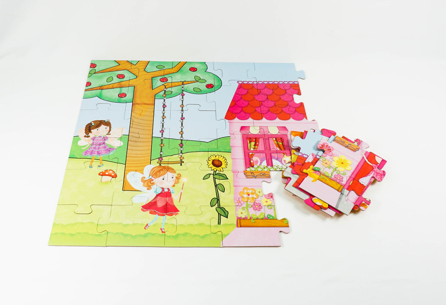 A Day with Posy and A Day with Zarabelle large floor puzzles feature Zarabelle in her fairy house and Posy in her fairy tree house. The 48-piece puzzles come in a handy box with handle and feature an image of the finished puzzle on one side.