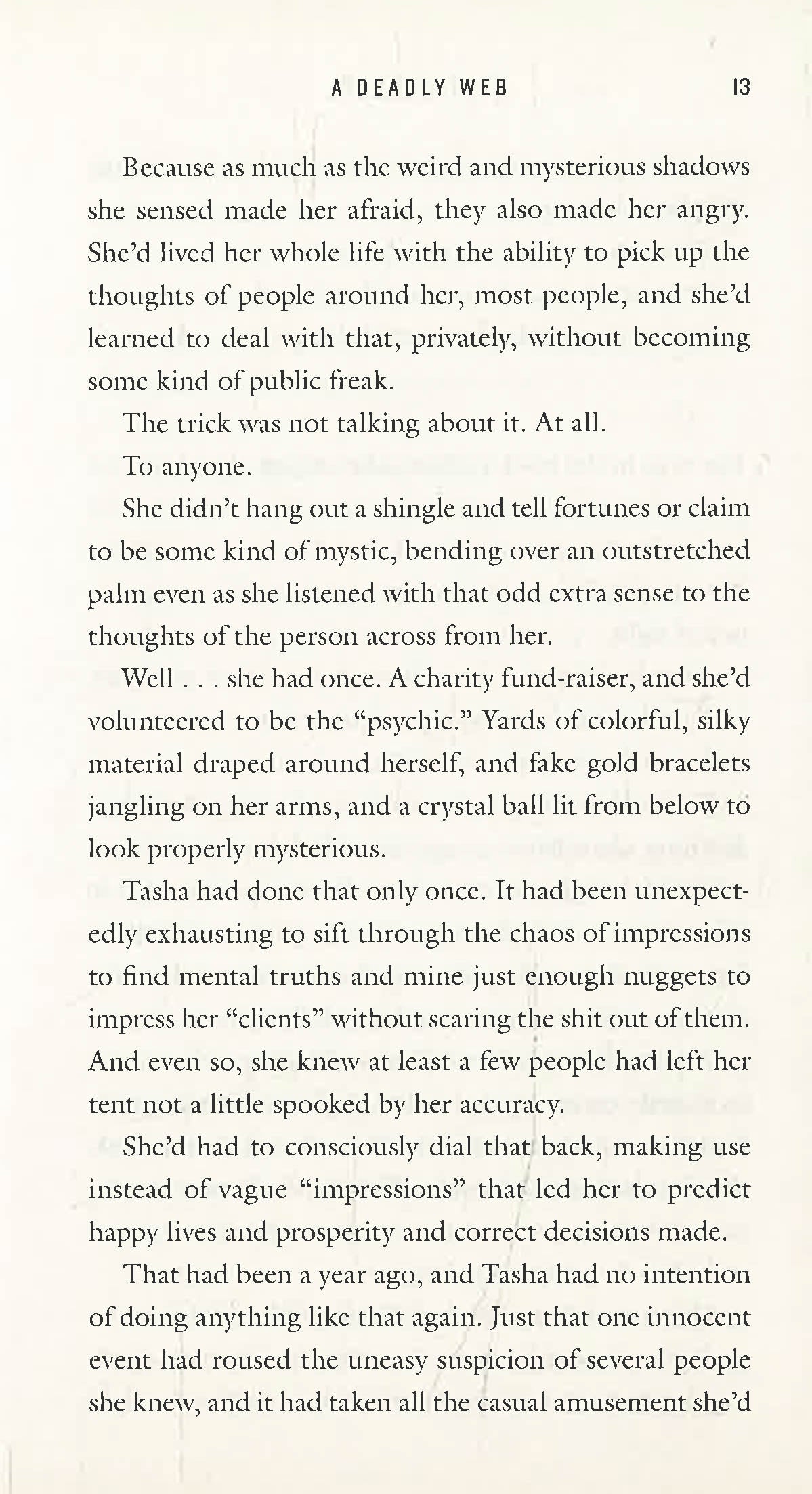 Tasha Solomon is a gifted psychic whose abilities have saved her more than once from situations as dangerous as they are baffling. She doesn’t believe she needs help, and she doesn’t even know that Guardians exist — until Brodie saves her life.