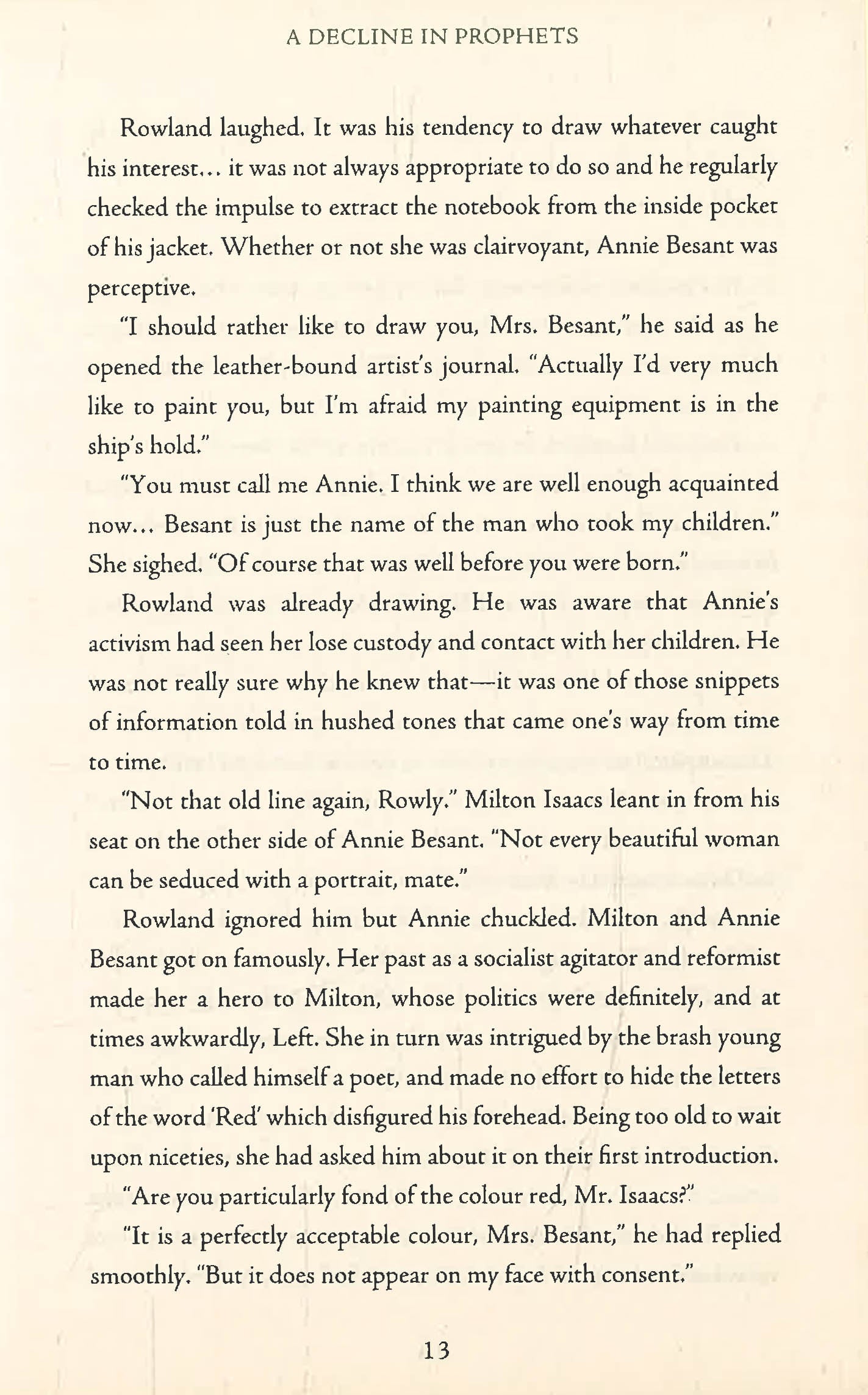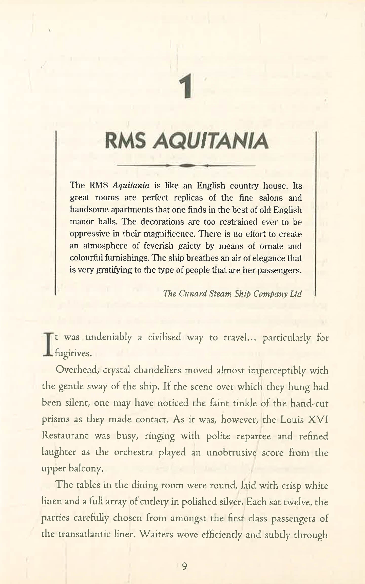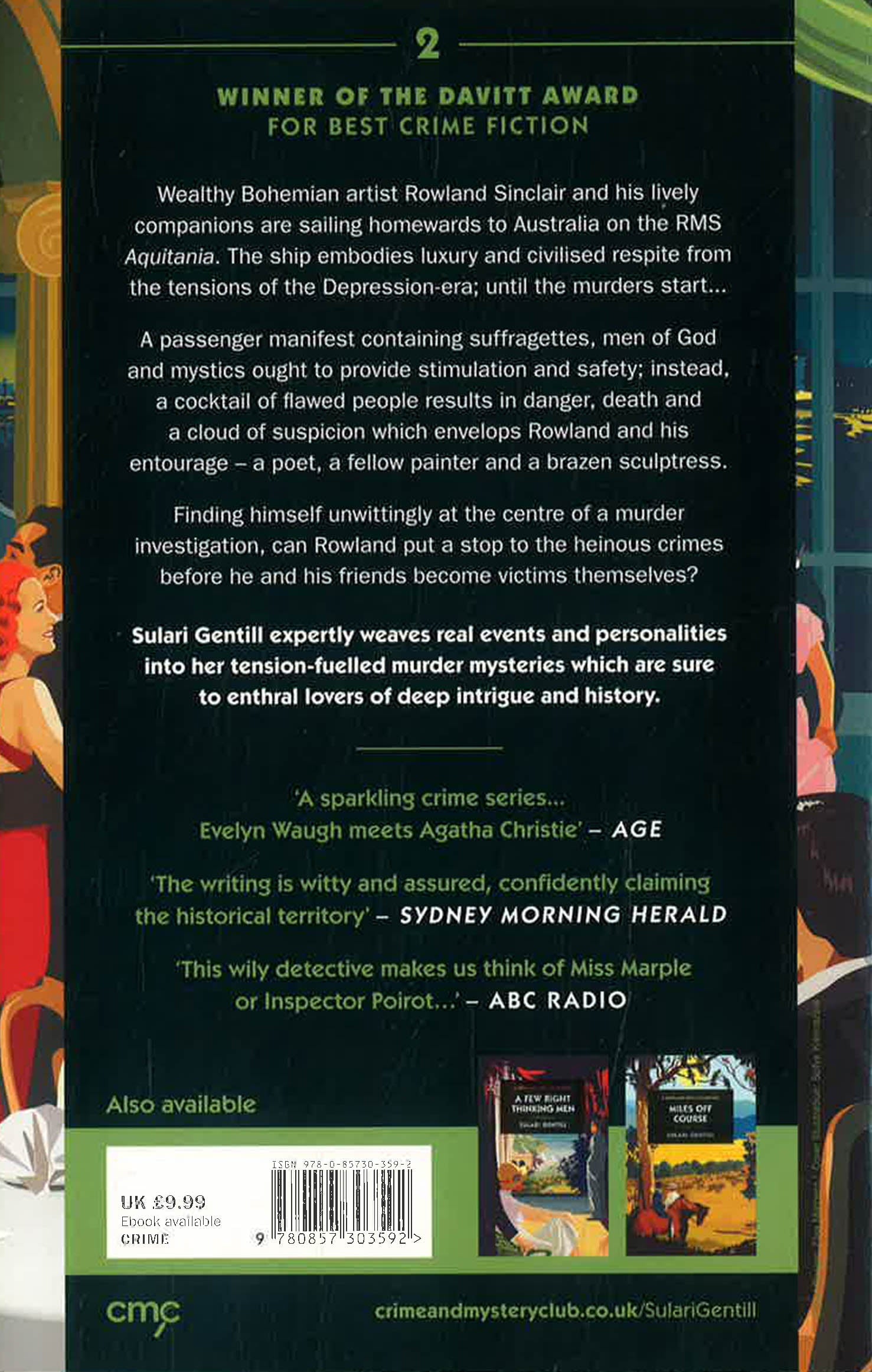 Wealthy Bohemian artist Rowland Sinclair and his lively companions are sailing homewards to Australia on the RMS Aquitania. The ship embodies luxury and civilised respite from the tensions of the Depression-era; until the murders start... A passenger manifest containing suffragettes, men of God and mystics ought to provide stimulation and safety; instead, a cocktail of flawed people results in danger, death and a cloud of suspicion which envelops Rowland and his entourage - a poet, a fellow painter and a brazen sculptress. Finding himself unwittingly at the centre of a murder investigation, can Rowland put a stop to the heinous crimes before he and his friends become victims themselves? Sulari Gentill expertly weaves real events and personalities into her tension-fuelled murder mysteries which are sure to enthral lovers of deep intrigue and history.
