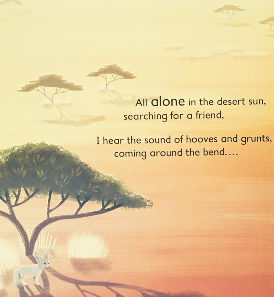 In the quiet of the desert, a little fennec fox prowls the dunes in search of a playmate. . . . But can he find anyone who wants to play? With rhyming text and eye-catching animal pop-ups on each page, Essi Kimpim?ki's screen-printed illustrations make this an exciting visual adventure for all ages.