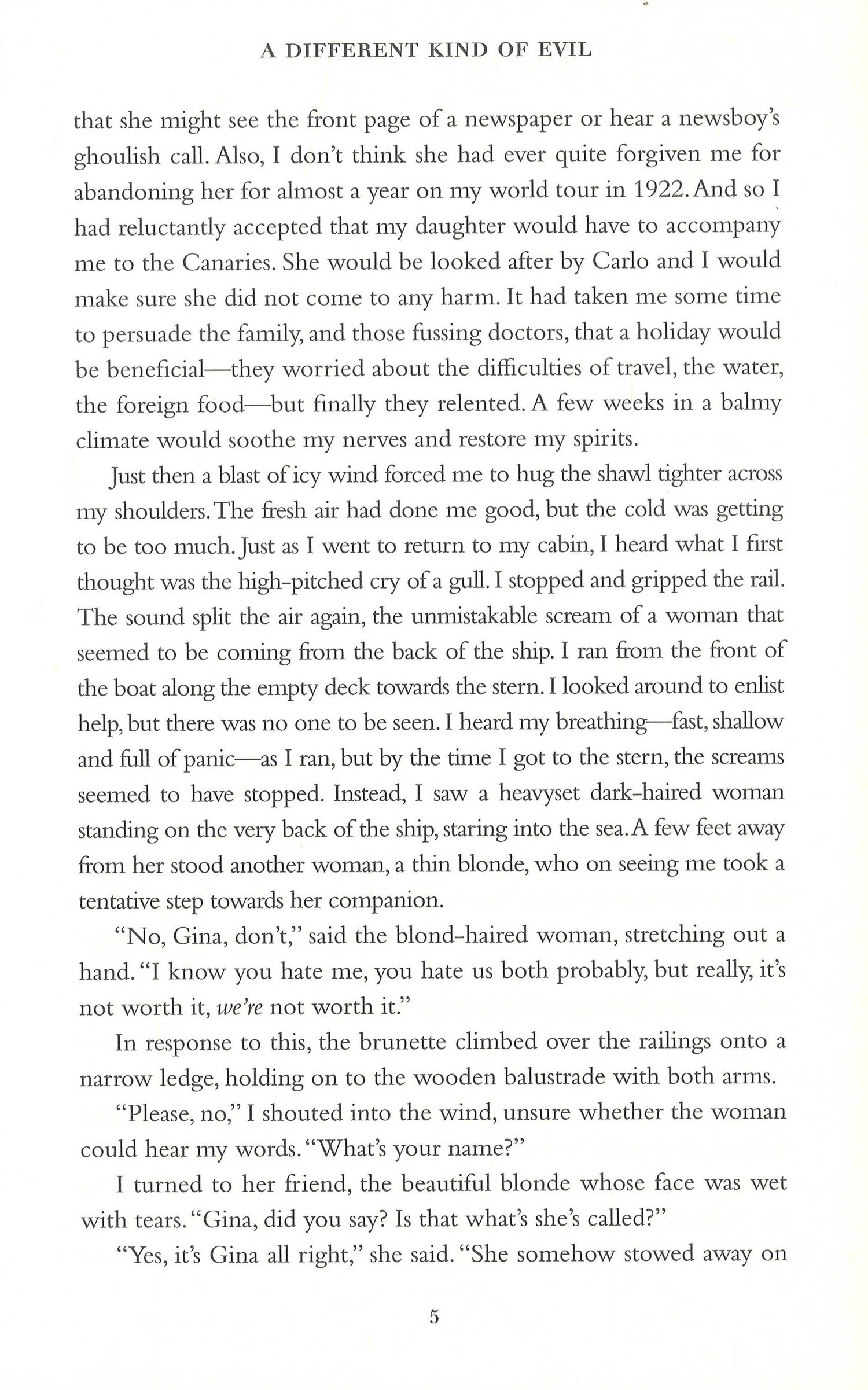 Two months after the events of A Talent for Murder, during which Agatha Christie “disappeared,” the famed mystery writer’s remarkable talent for detection has captured the attention of British Special Agent Davison. Now, at his behest, she is traveling to the beautiful Canary Islands to investigate the strange and gruesome death of Douglas Greene, an agent of the British Secret Intelligence Service. As she embarks on a glamorous cruise ship to her destination, she suddenly hears a scream. Rushing over to the stern of the liner, she witnesses a woman fling herself over the side of the ship to her death. After this shocking experience, she makes it to the Grand Hotel in a lush valley on the islands. There, she meets a diverse and fascinating cast of characters, including two men who are suspected to be involved in the murder of Douglas Greene: an occultist similar to Aleister Crowley; and the secretary to a prominent scholar, who may also be a Communist spy. But Agatha soon realizes that nothing is what it seems here and she is surprised to learn that the apparent suicide of the young woman on the ocean liner is related to the murder of Douglas Greene. Now she has to unmask a different kind of evil in this sinister and thrilling mystery.