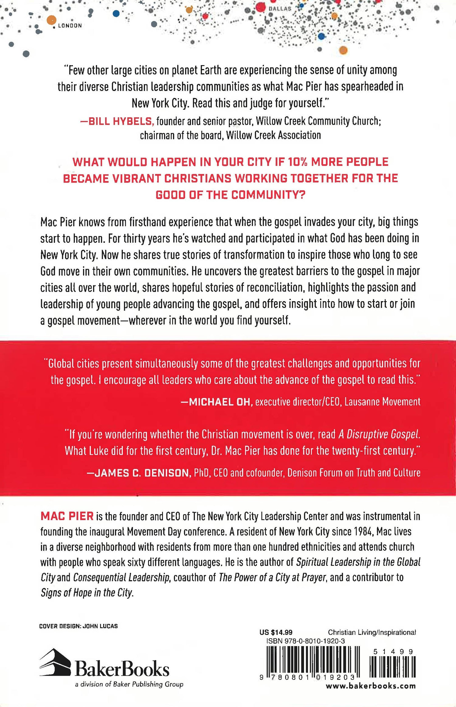 Stories Help Readers Impact Their Communities What would happen in your city if 10 percent more people became vibrant Christians who worked together for the good of the community? Mac Pier knows from first-hand experience that when the gospel invades your city, big things start to happen. For thirty years he's watched and participated in what God has been doing in New York City. Now he shares true stories of transformation to inspire readers who long to see God move in their own communities. He helps readers understand the greatest barriers to the gospel in major cities all over the world, shares hopeful stories of reconciliation, highlights the passion and leadership of millennials advancing the gospel, and offers insight into how to start or join a gospel movement wherever in the world readers find themselves. Anyone looking for motivation and inspiration to join God where he is working will love these exciting dispatches from the front lines of outreach on five continents. Foreword by Tim Keller.