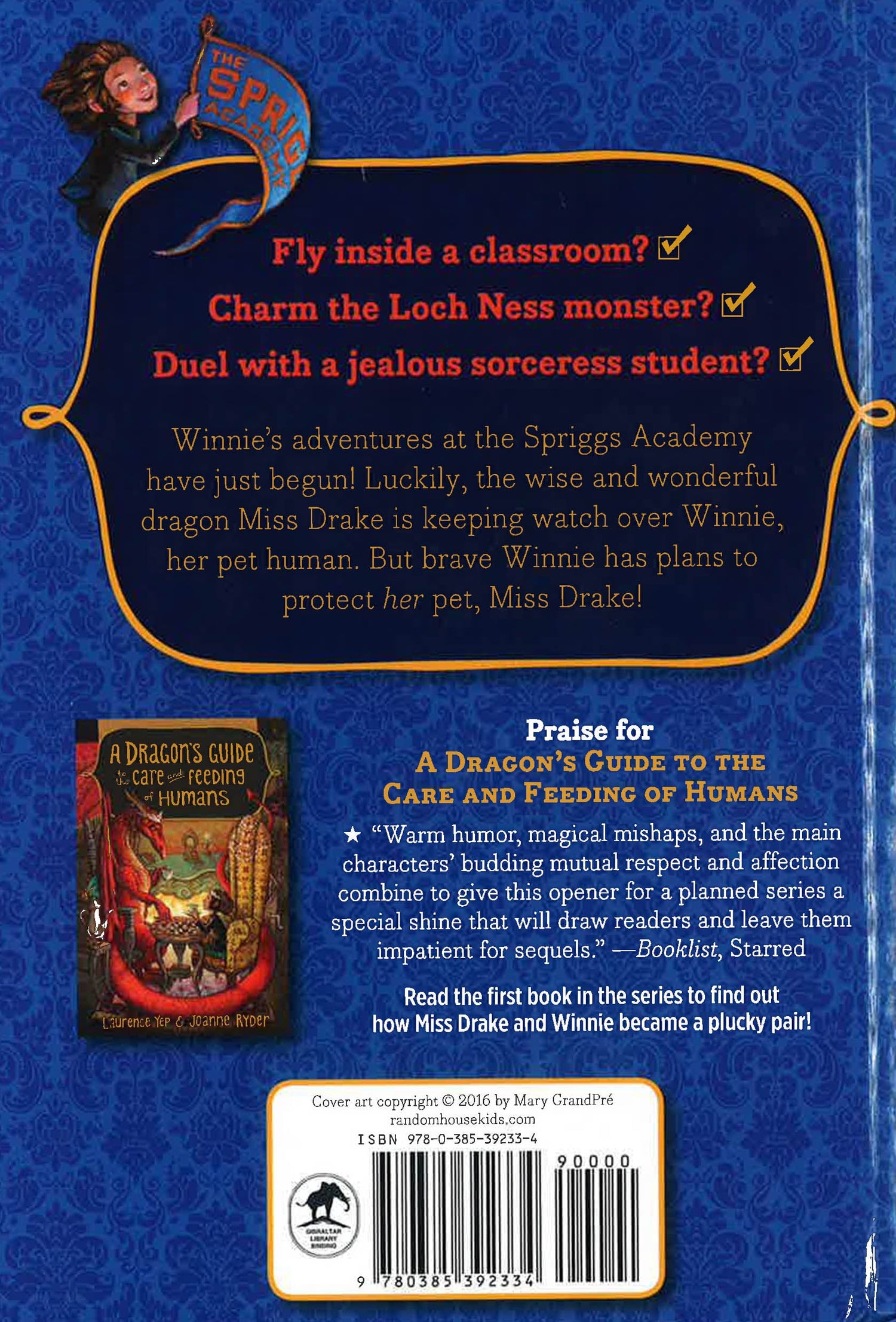 Three-thousand-year-old Miss Drake has arranged to send her dear pet Winnie to The Spriggs Academy, an extraordinary school for humans and magicals alike. Winnie is particularly excited about magic class and having Sir Isaac Newton for science. She?s also making new friends?and frenemies. . . . When a plot to snatch Winnie from her San Francisco home is uncovered, Miss Drake is ready to use all her cunning and magic to thwart it. Not that feisty Winnie needs the help. . . . As a team, the intrepid duo you first met in A Dragon?s Guide to the Care and Feeding of Humans is unstoppable! With equal doses of whimsy and humor, Laurence Yep and Joanne Ryder have crafted an enchanting story about true friendship. *This book may have remainder mark*