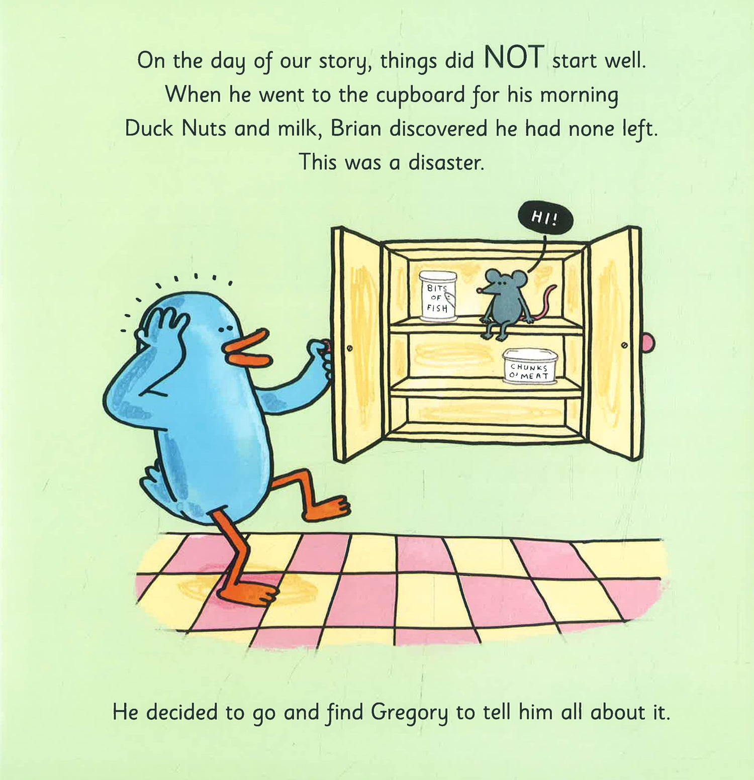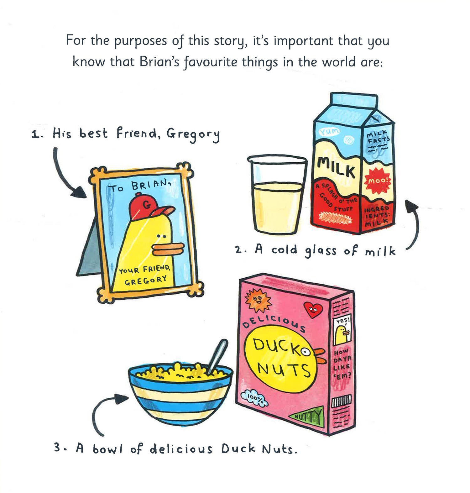 Brian is a duck - a very happy duck, normally. You see, all Brian needs to feel content is: 1. A glass of cold milk 2. A bowl of delicious Duck Nuts breakfast cereal 3. His best friend Gregory But one day, Brian finds himself fresh out of milk, with no Duck Nuts - and no Gregory - to be seen! His day has just turned into one big disaster...