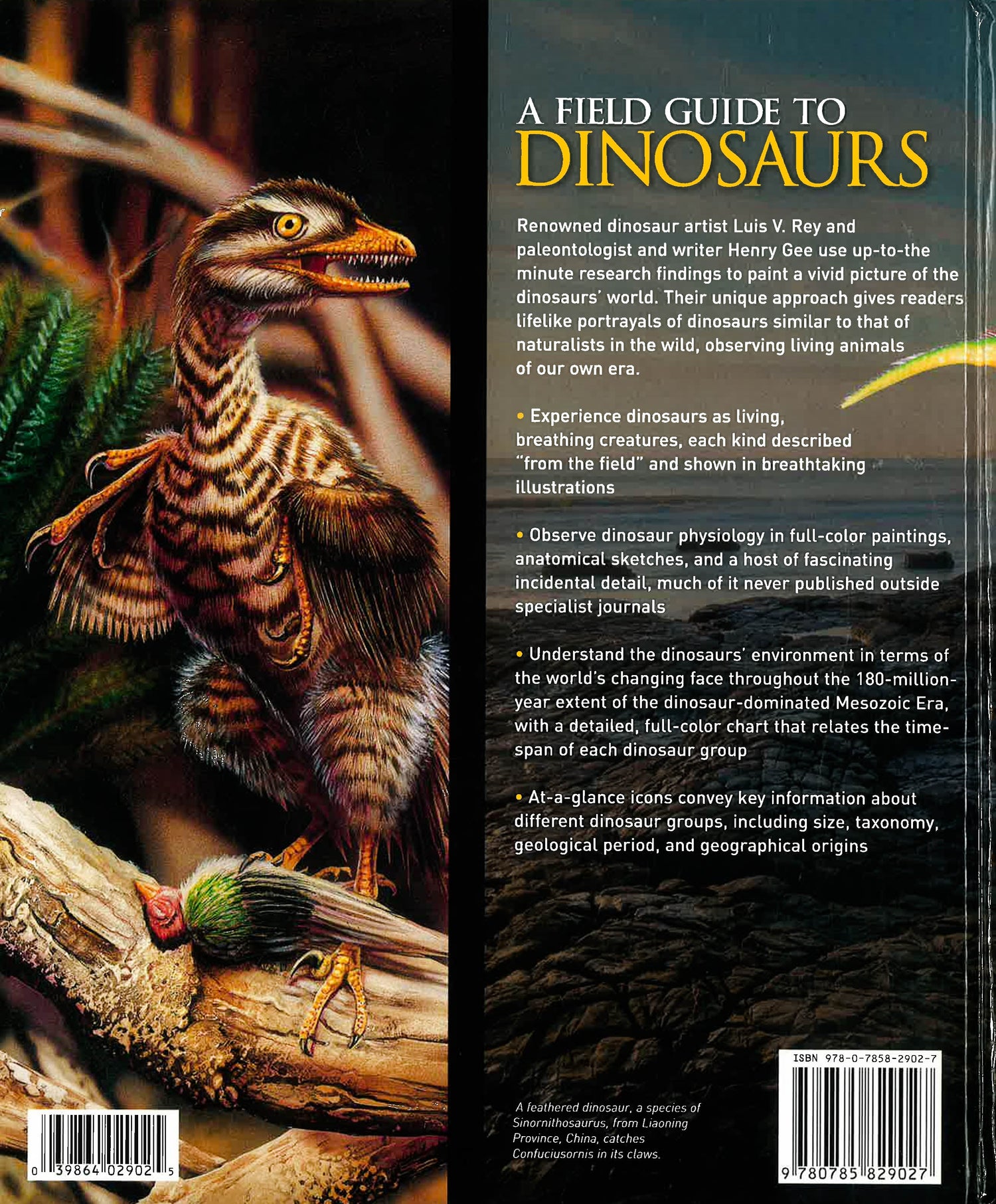 Sensational discoveries during the past decade have shed new light on the most intimate details of dinosaurs' lives, including their appearance and behavior, their family structures, and their sex lives. The latest dinosaur findings present a far more vivid and complete picture of this extraordinarily successful group of animals than would have been thought possible only a few years ago. Recent findings in South America, Madagascar, Mongolia, China, and Australia have revealed the existence of amazing and exotic dinosaurs. Paleontologist Henry Gee and artist Luis Ray have seamlessly integrated all of the most recent discoveries in the making of this unique book. In A Field Guide to Dinosaurs," Renowned dinosaur artist Luis V. Rey and paleontologist and writer Henry Gee use up-to-the-minute research findings to paint a vivid picture of the dinosaurs' world. Their unique approach gives readers lifelike portrayals of dinosaurs similar to that of naturalists in the wild, observing living animals of our own era. Readers will experience dinosaurs as living, breathing creatures, with each kind described "from the field" and shown in breathtaking illustrations. Dinosaur physiology is shown in full-color paintings, anatomical sketches, and a host of fascinating incidental detail, much of it never published outside specialist journals. Readers will understand the dinosaurs' environment in terms of the world's changing face throughout the 180-million-year extent of the dinosaur-dominated Mesozoic Era, with a detailed, full-color chart that relates the time span of each dinosaur group. The book also includes at-a-glance icons that convey information about different dinosaur groups, including size, taxonomy, geological period, and geographical origins.
