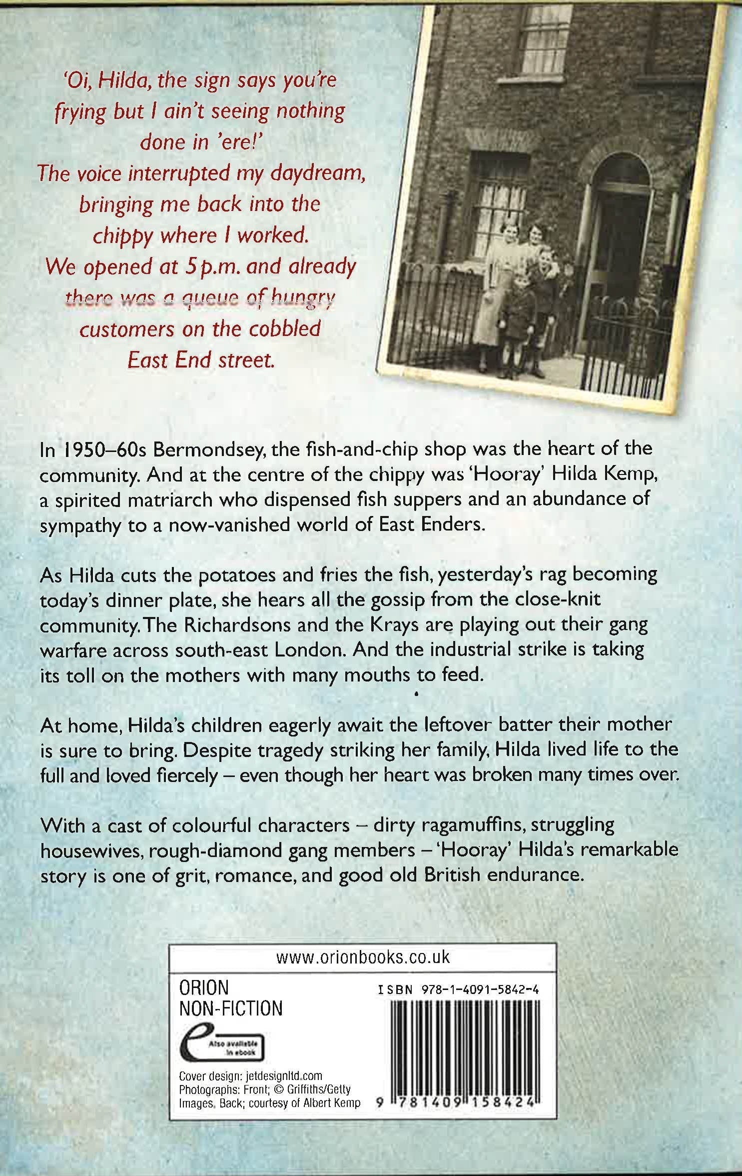 In 1950s and 60s Bermondsey, the fish-and-chip shop was at the centre of the community. And at the heart of the chippy itself was 'Hooray' Hilda Kemp, a spirited matriarch who dispensed fish suppers and an abundance of sympathy to a now-vanished world of East Enders.