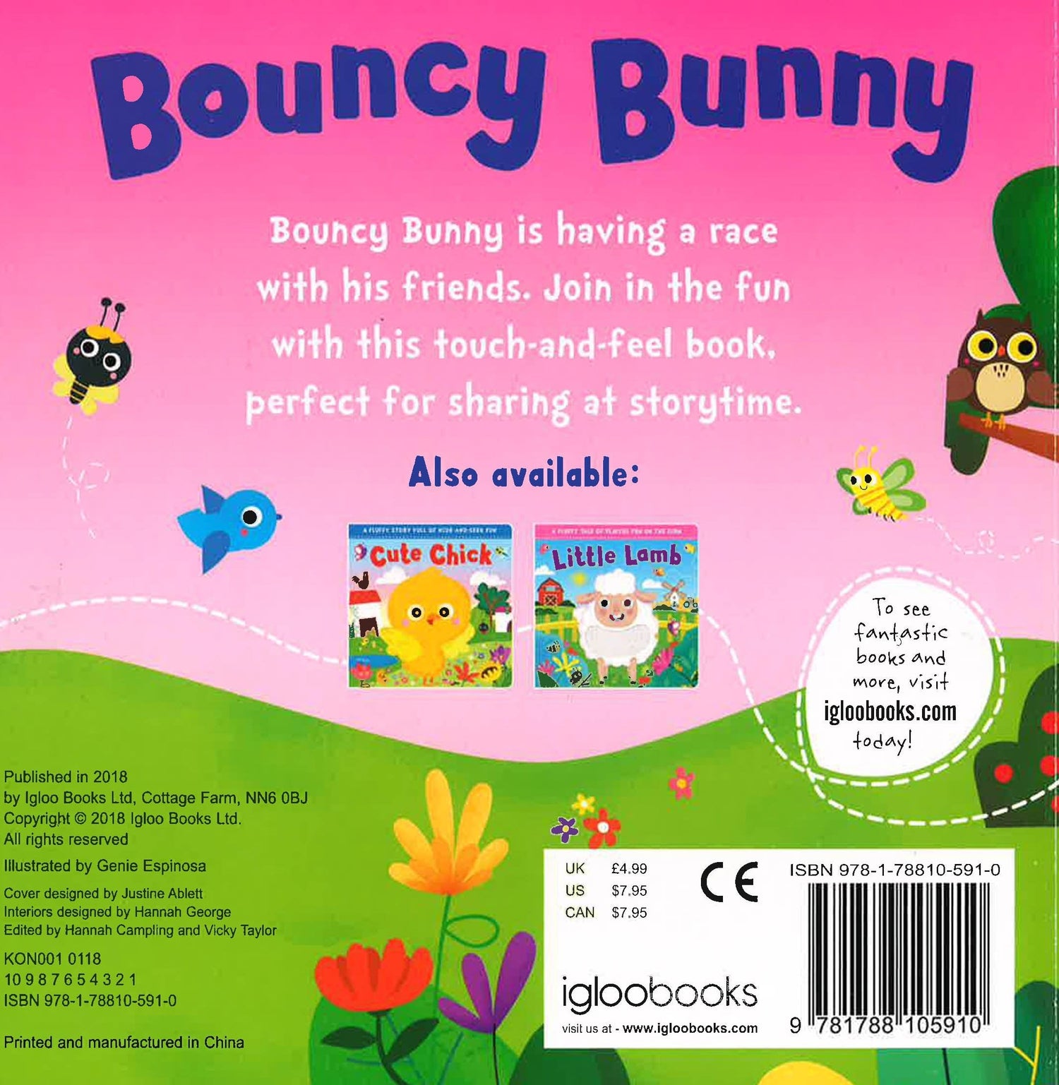Bouncy Bunny is having a race with his friends. Join in the fun with this touch-and-feel book, perfect for sharing at story time.